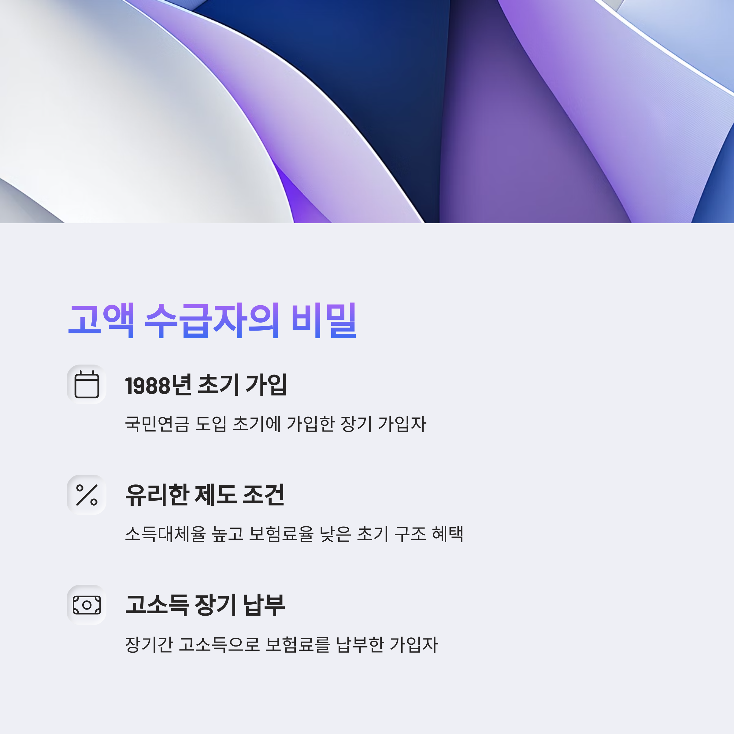 고액 수급자의 대부분은 1988년 국민연금 도입 초기에 가입한 장기 가입자입니다