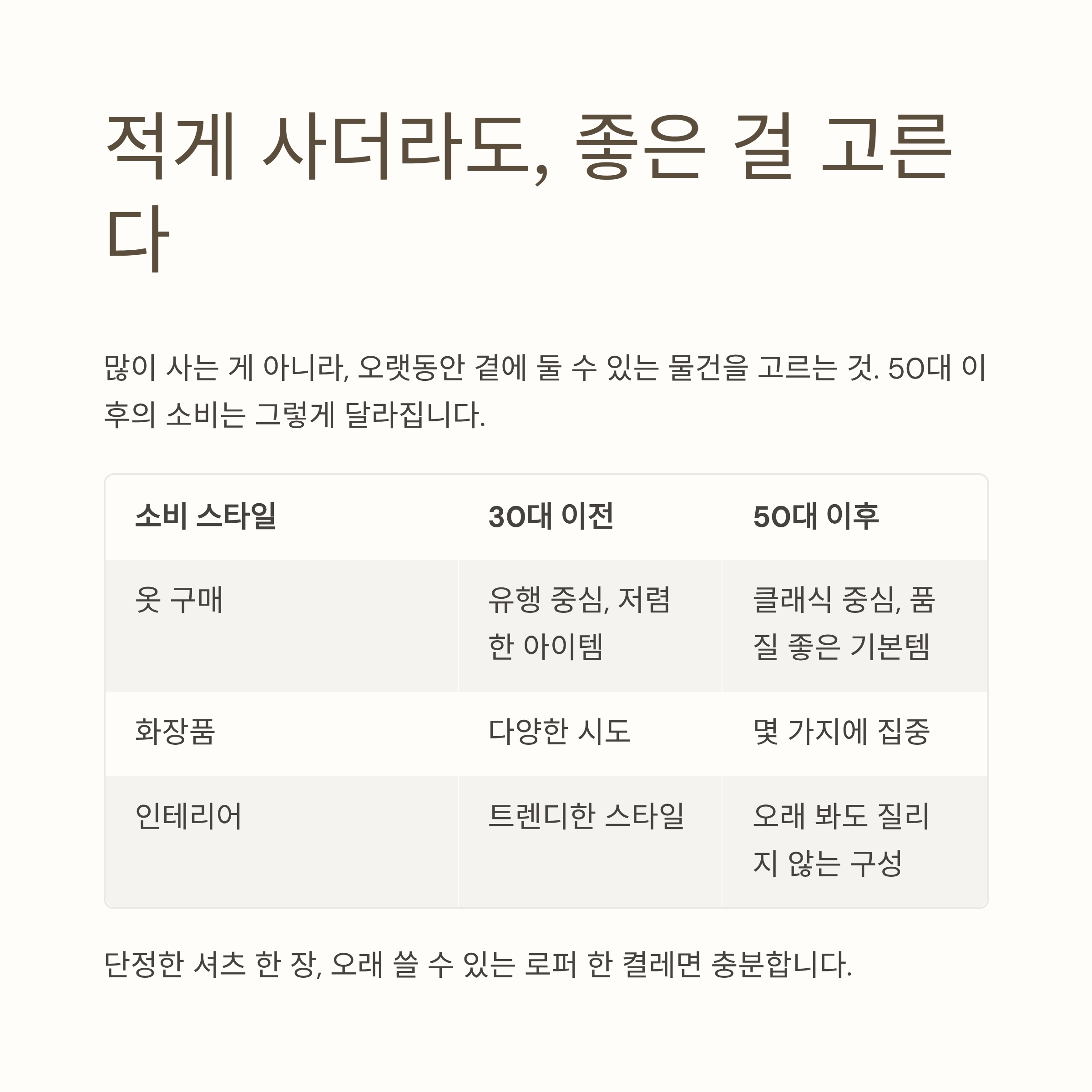 많이 사는 게 아니라, 오랫동안 곁에 둘 수 있는 물건을 고르는 것.