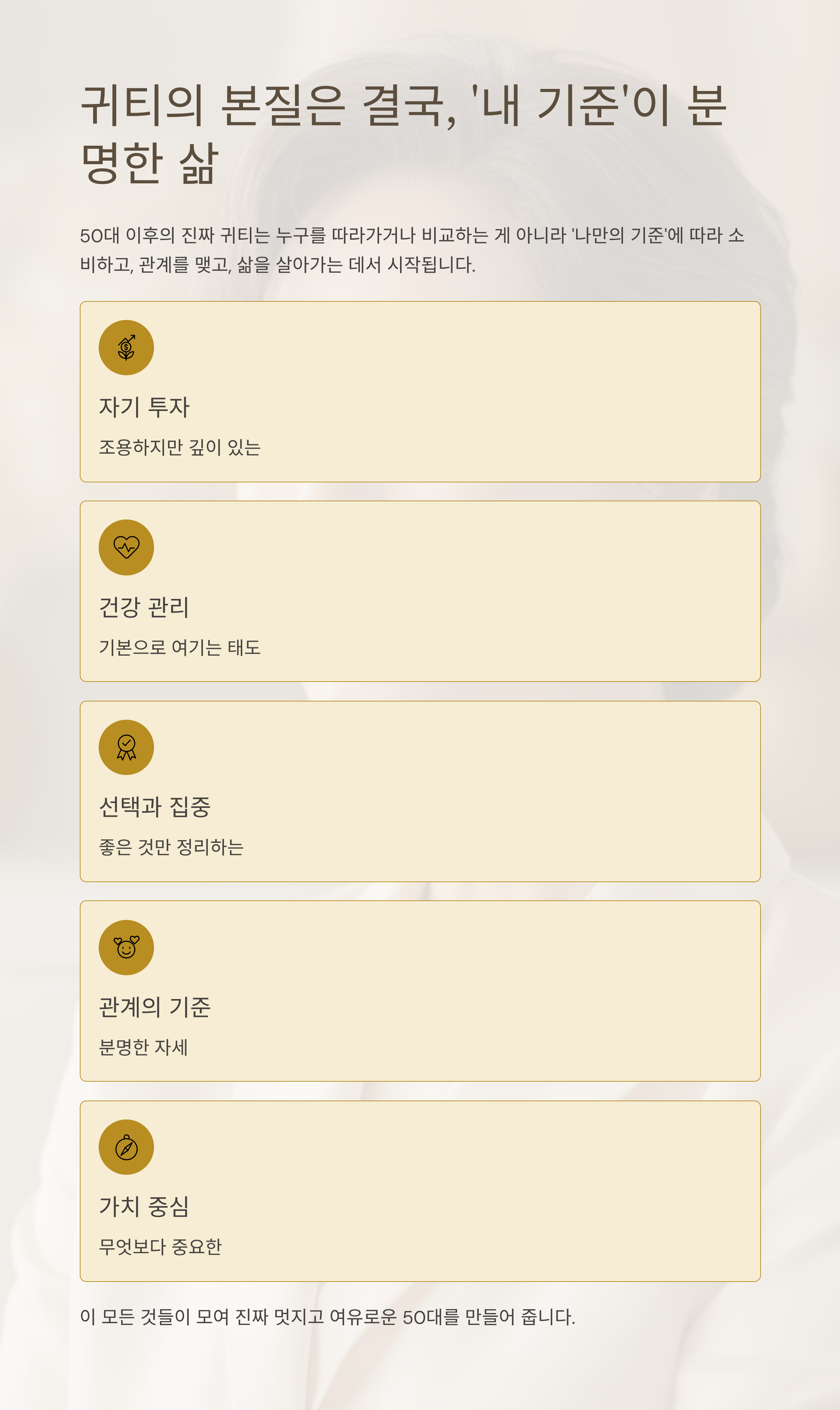 정리해보면, 50대 이후의 진짜 귀티는