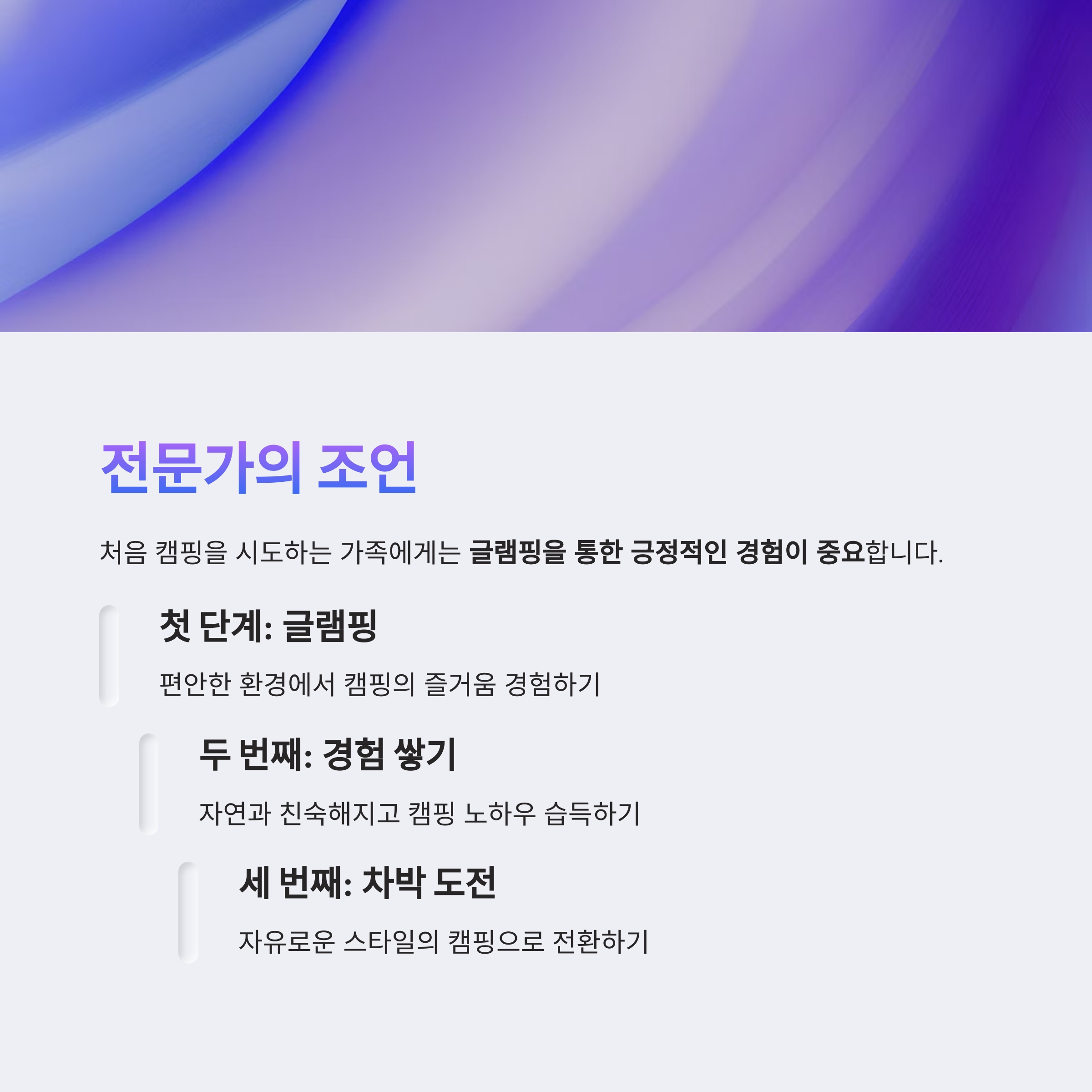 처음 캠핑을 시도하는 가족에게는 글램핑을 통한 긍정적인 경험이 중요합니다.