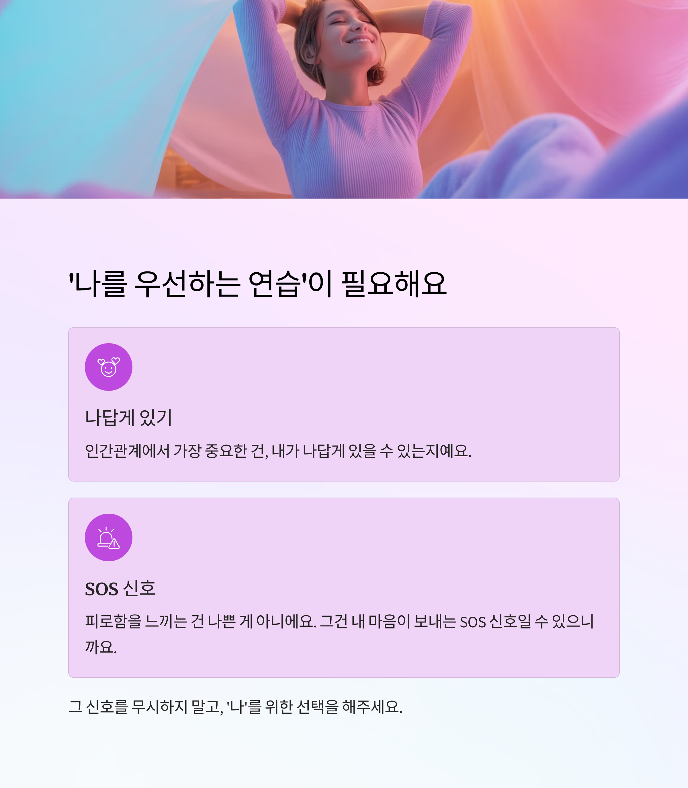 그 신호를 무시하지 말고, '나'를 위한 선택을 해주세요.
