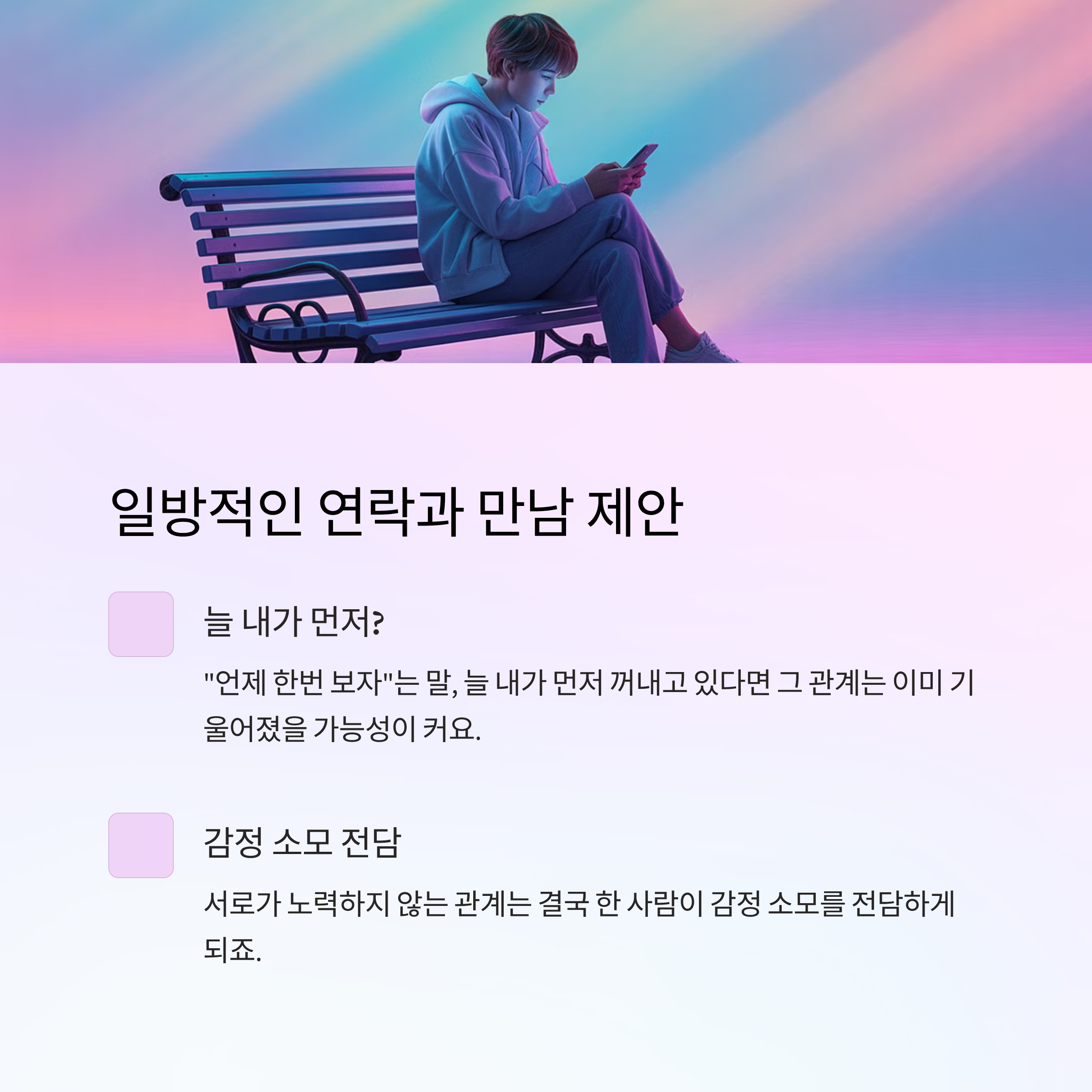 자연스럽게 이어지는 관계라면 '내가 먼저'가 반복되지 않아야 해요.