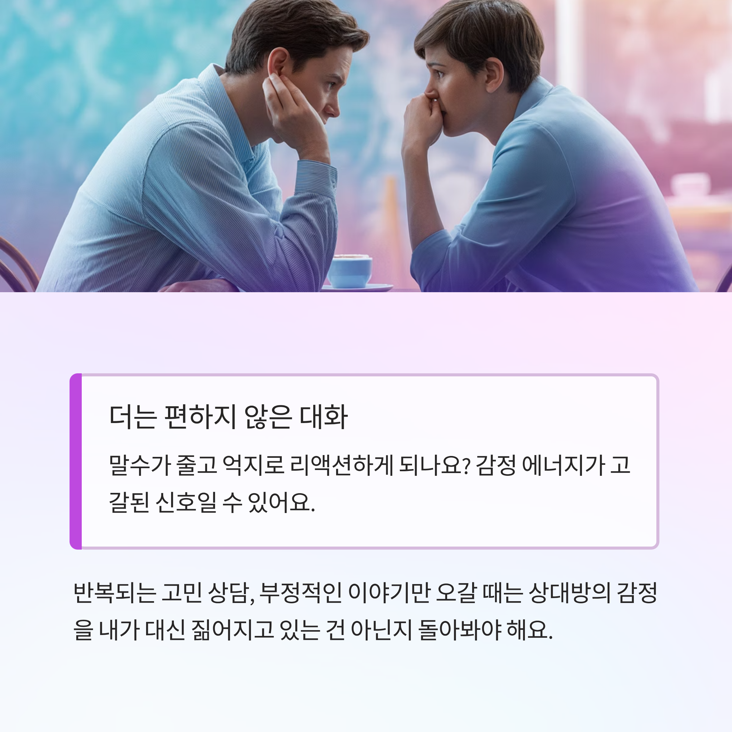 특히 반복되는 고민 상담, 부정적인 이야기만 오갈 때는