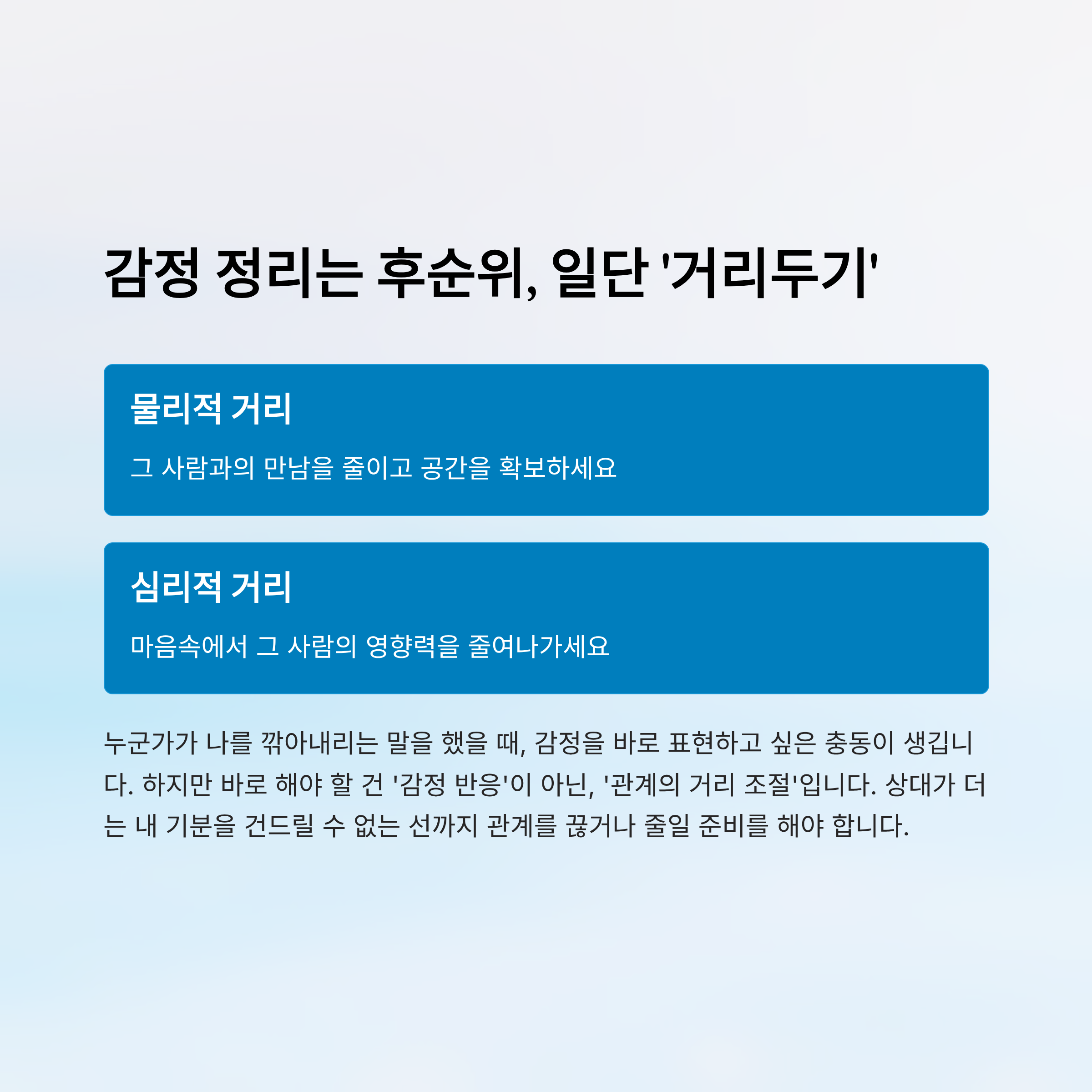 하지만 바로 해야 할 건 ‘감정 반응’이 아닌, ‘관계의 거리 조절’입니다.