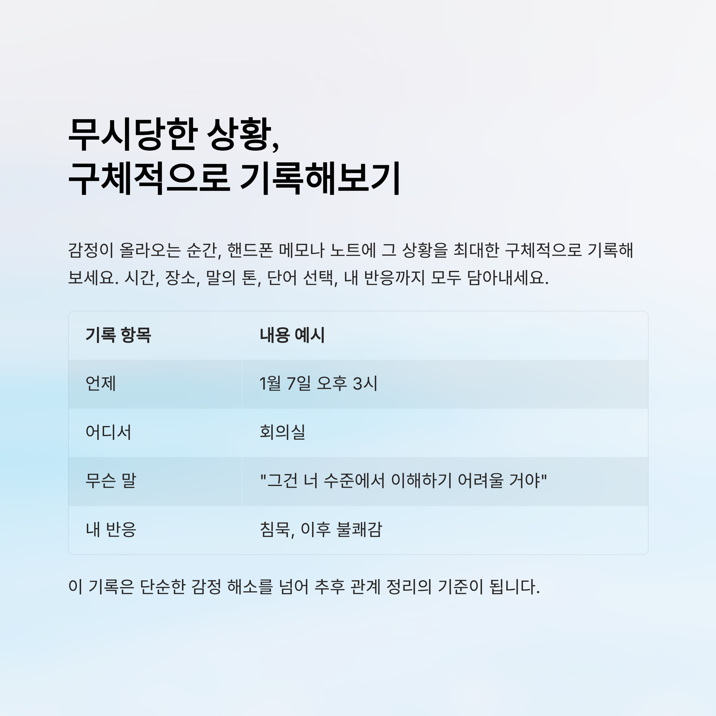 무시당한 상황, 구체적으로 기록해보기