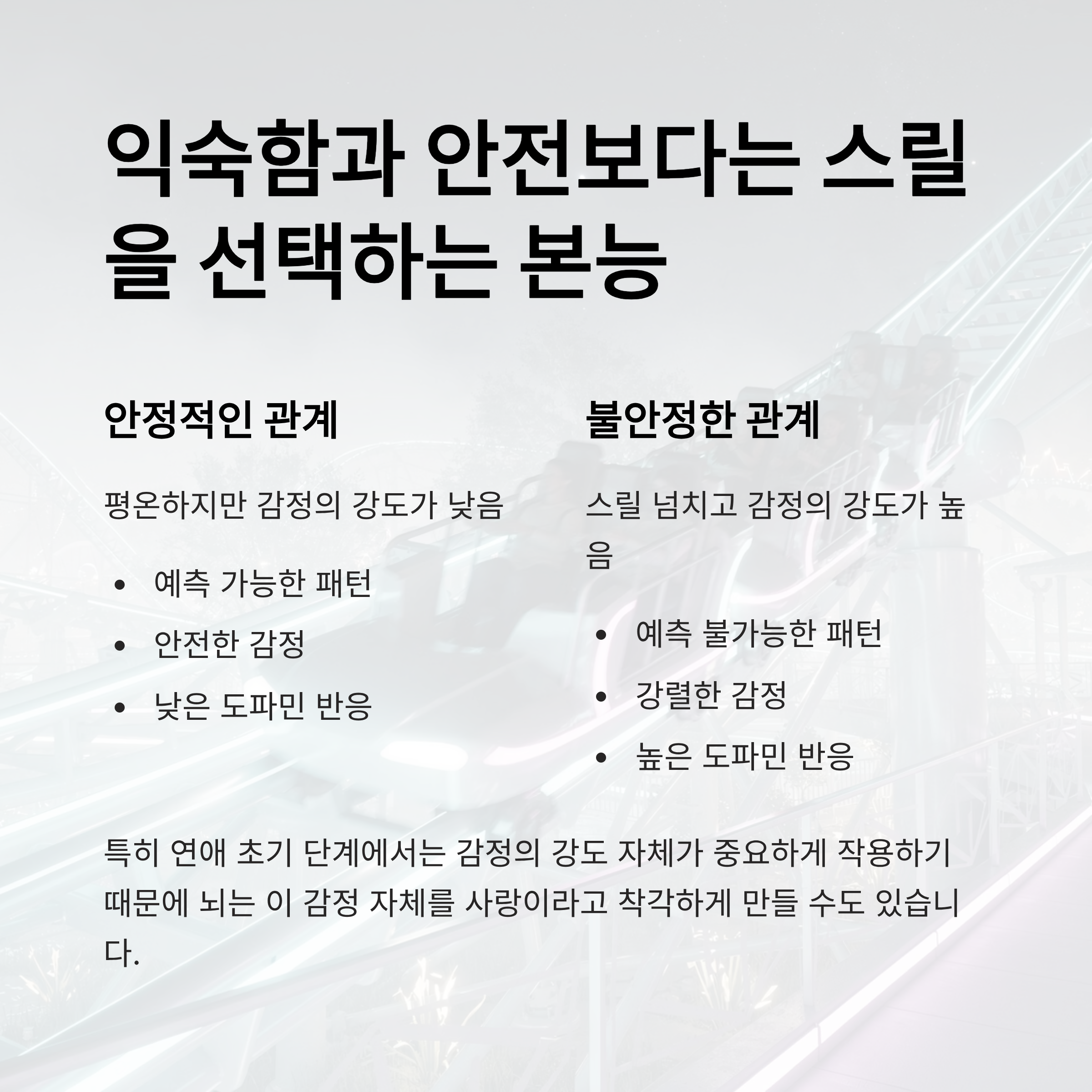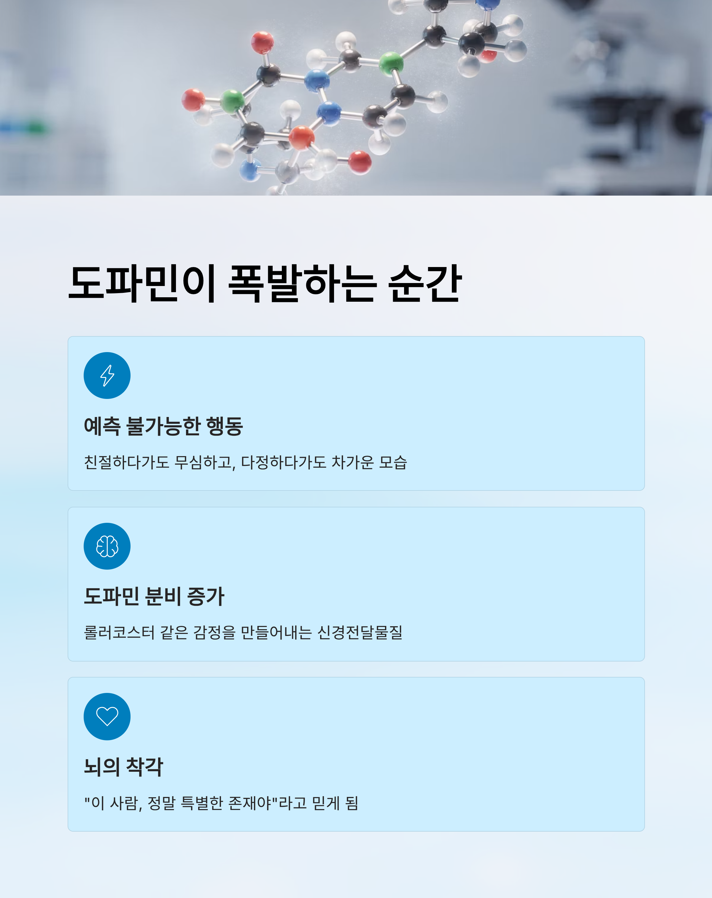 특히 예측할 수 없는 행동을 하는 사람과의 관계에서 도파민은 더 강력하게 반응하죠.