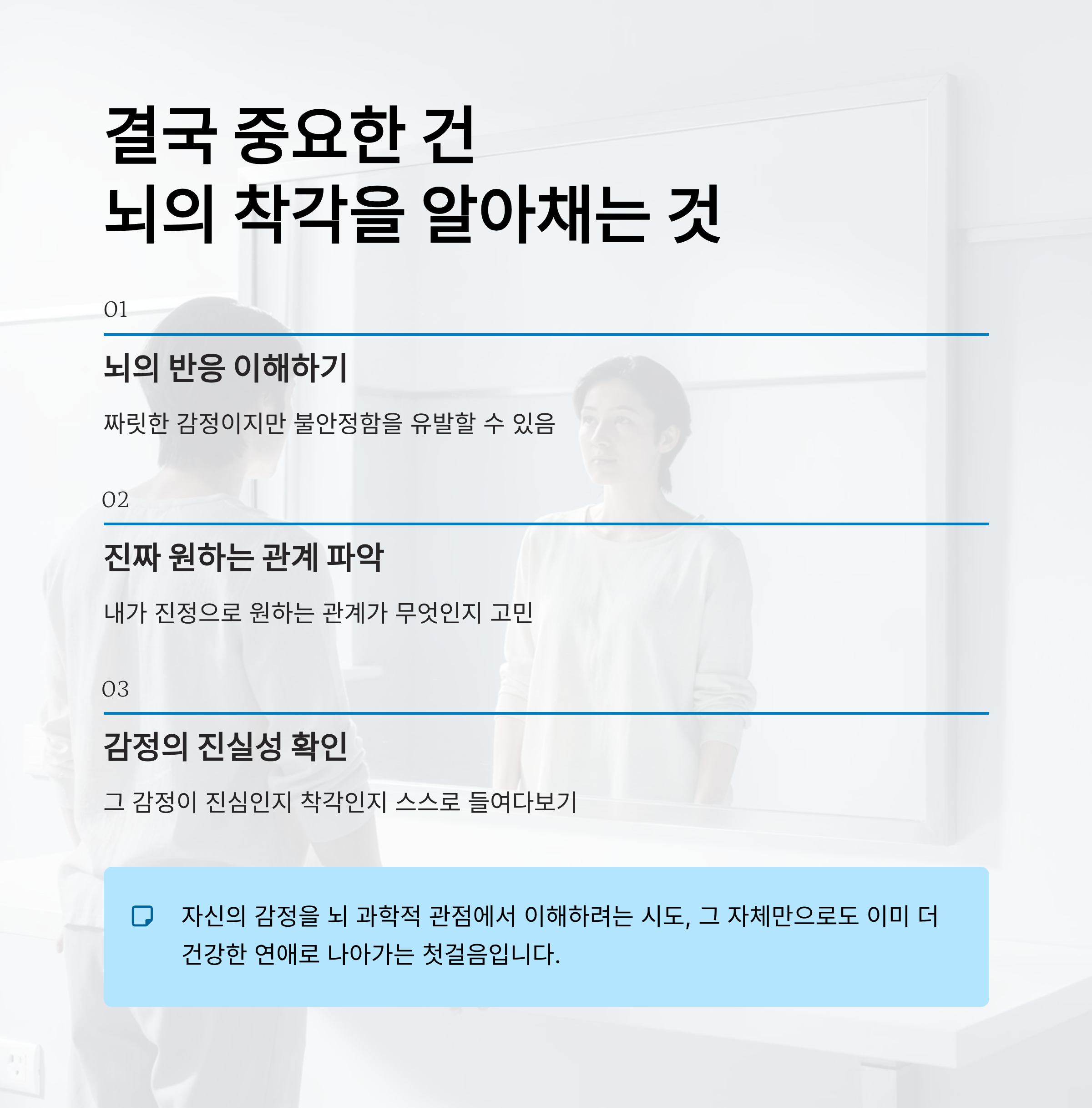 결국, 뇌는 이 감정 자체를 사랑이라고 착각하게 만들 수도 있습니다.