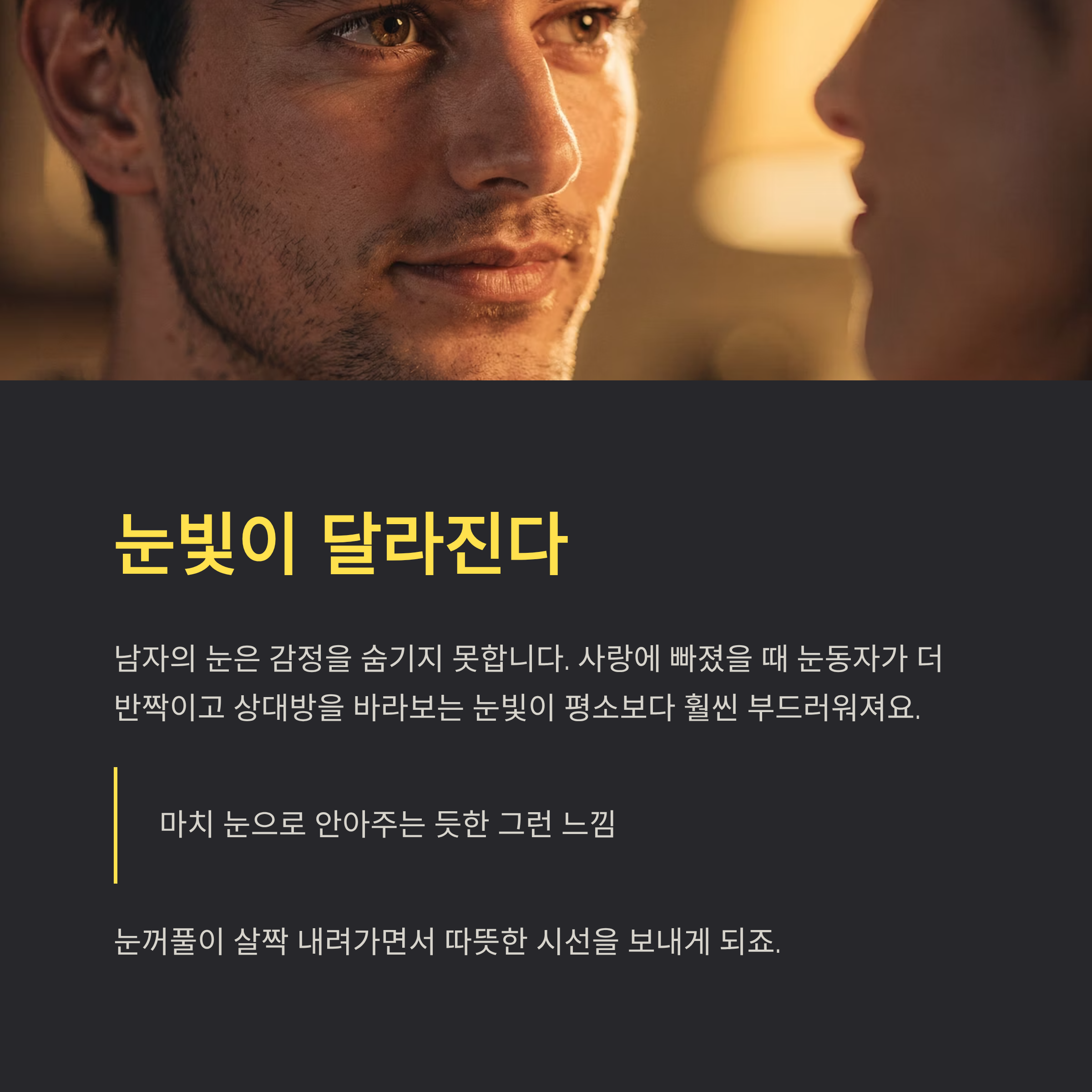 아무 말 없이도 느껴지는 그 미묘한 눈빛의 변화, 눈치채셨나요?