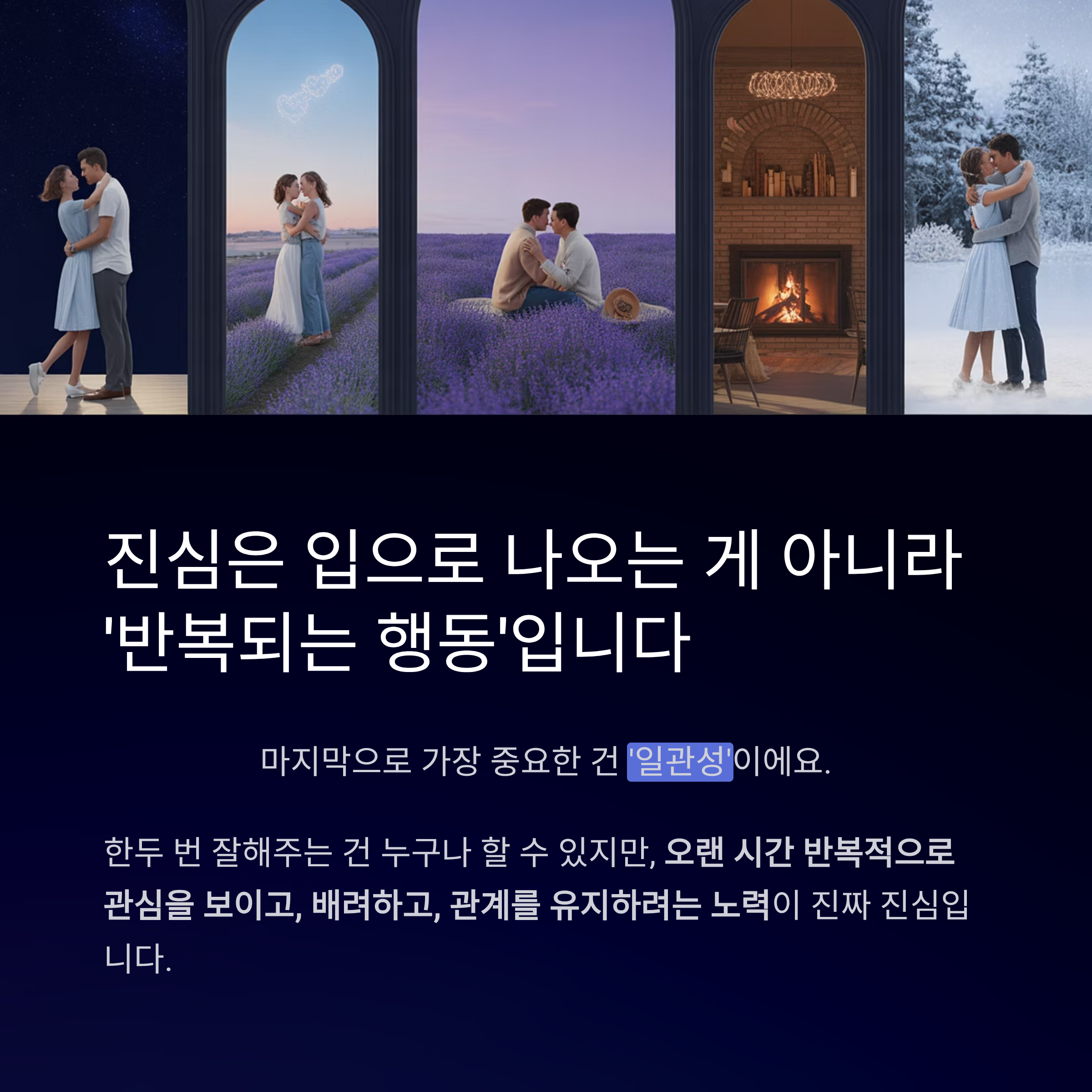 | 관심 표현 | 말만 많고 실천은 없음 | 사소한 배려와 일상에서의 행동으로 표현 |