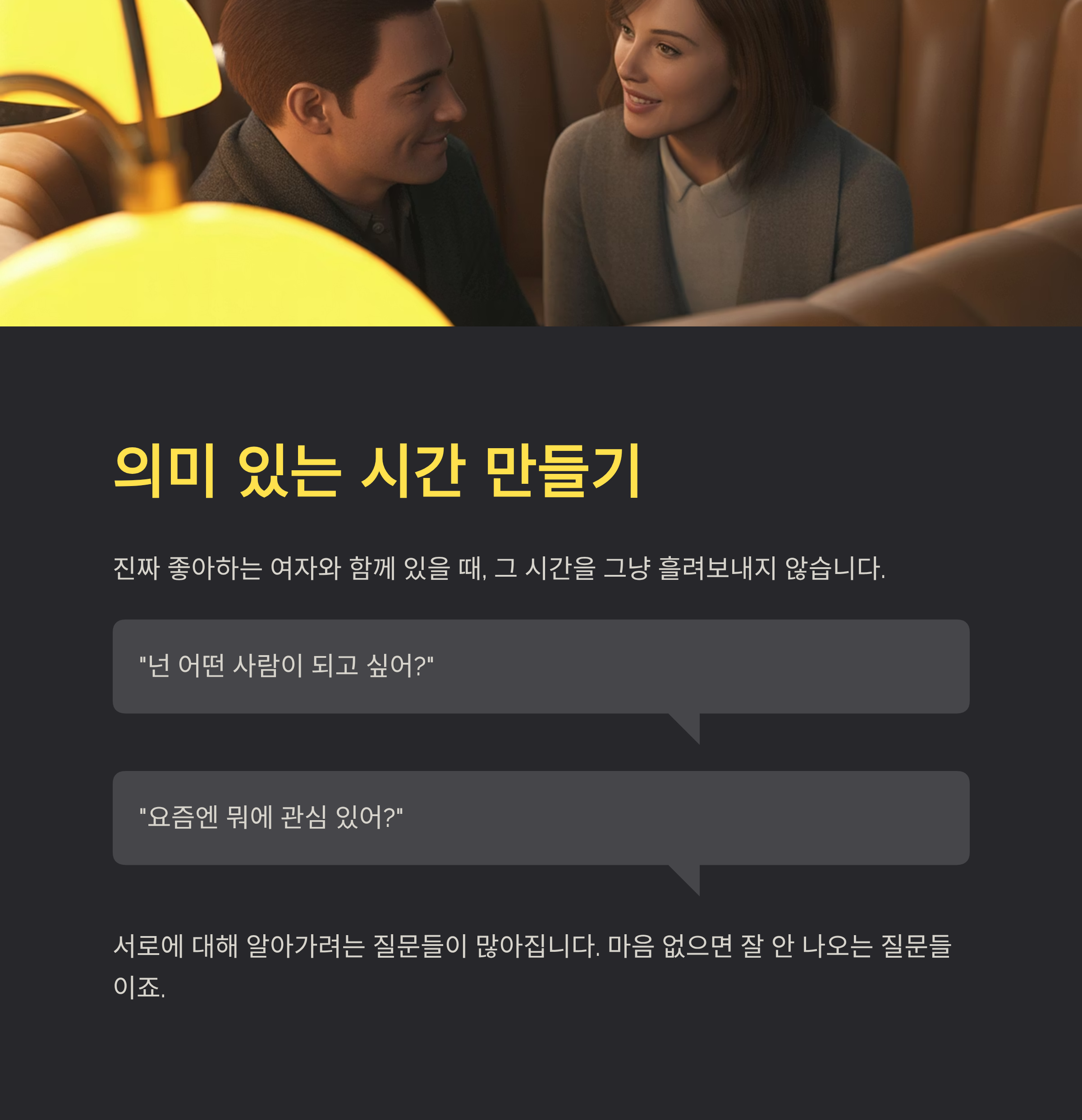 남자는 진짜 좋아하는 여자와 함께 있을 때, 그 시간을 그냥 흘려보내지 않습니다.