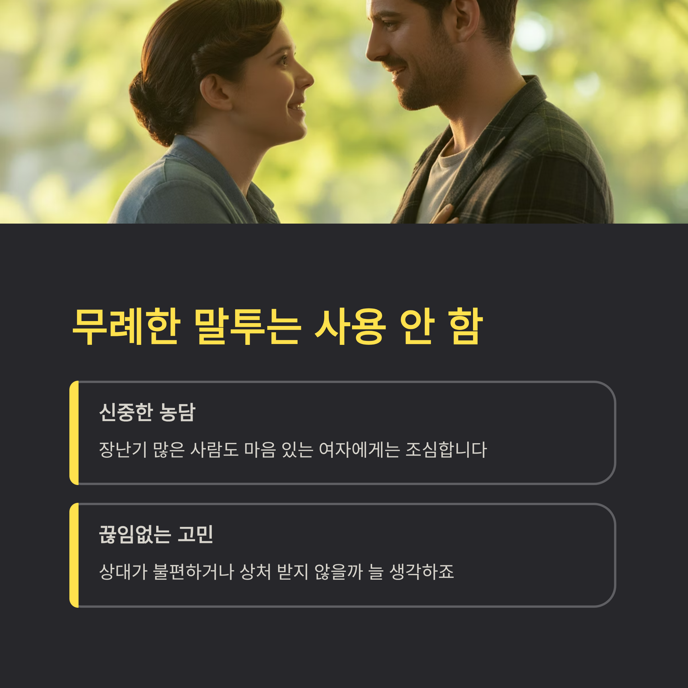 아무리 장난기 많은 사람이라도, 마음 있는 여자에게는 농담조차 조심합니다.