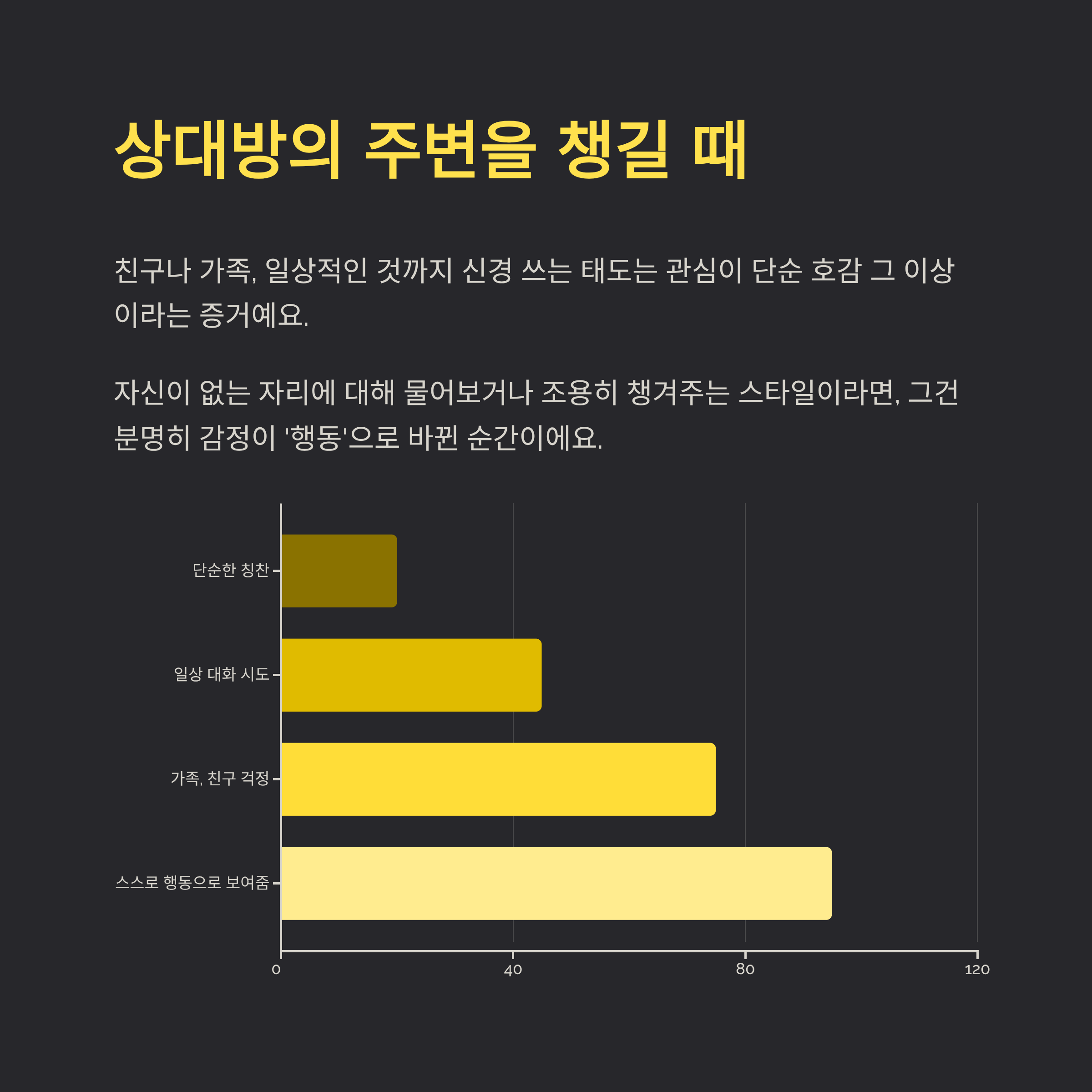 친구나 가족, 일상적인 것까지 신경 쓰는 태도는