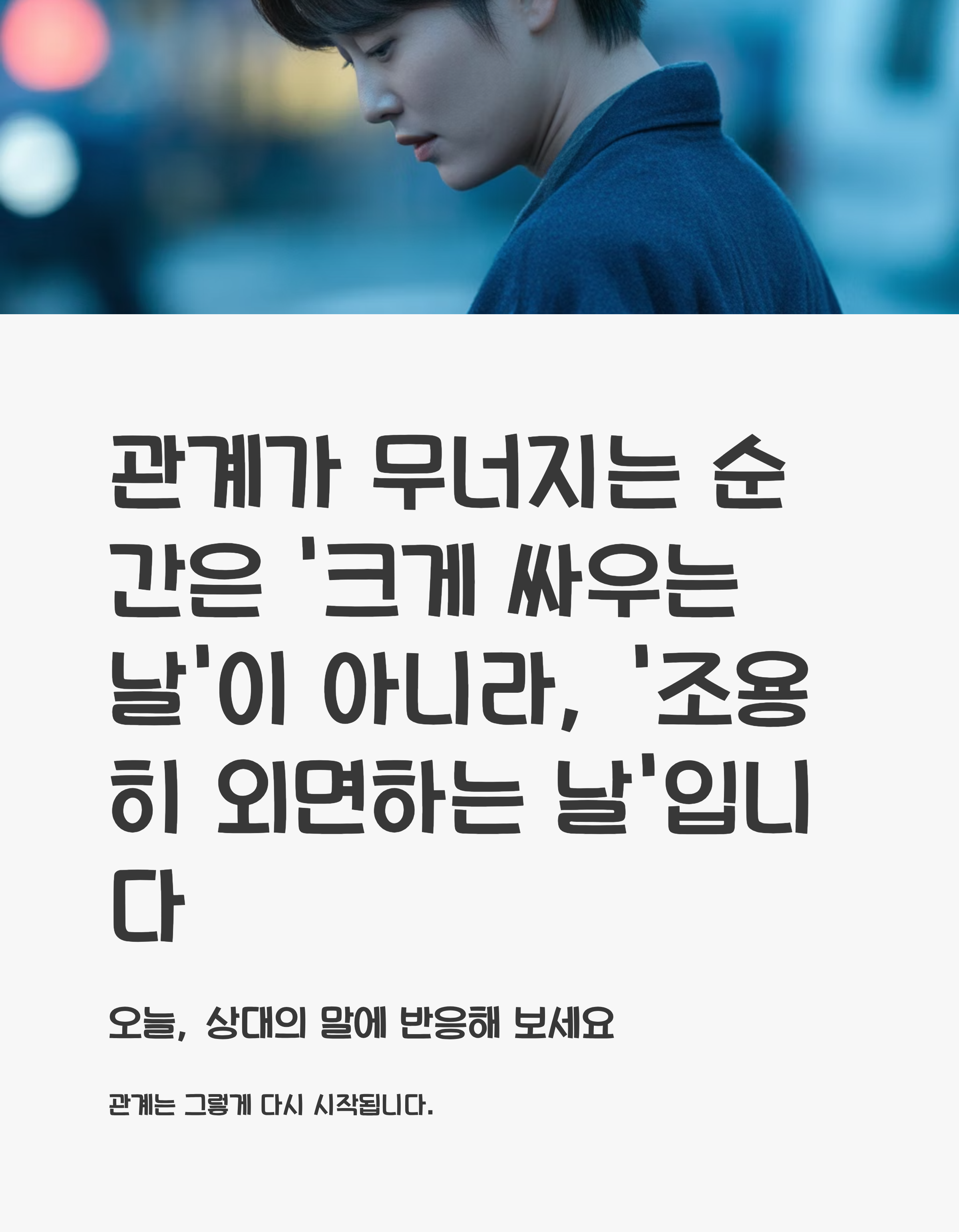 관계가 무너지는 순간은 ‘크게 싸우는 날’이 아니라, ‘조용히 외면하는 날’이라는 말이 있습니다.