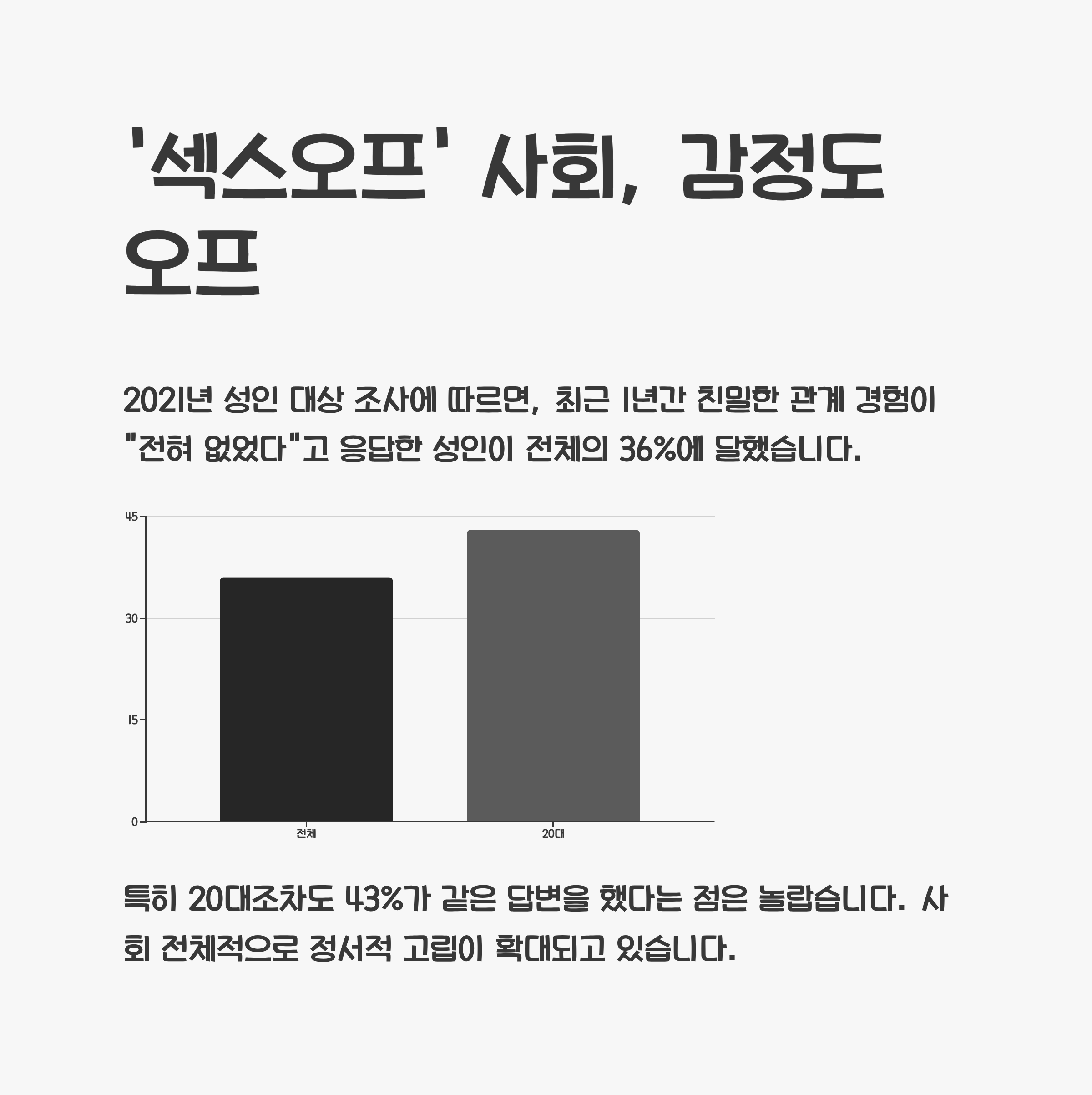 최근 1년간 친밀한 관계 경험이 "전혀 없었다"고 응답한 성인이 전체의 36%에 달했습니다.