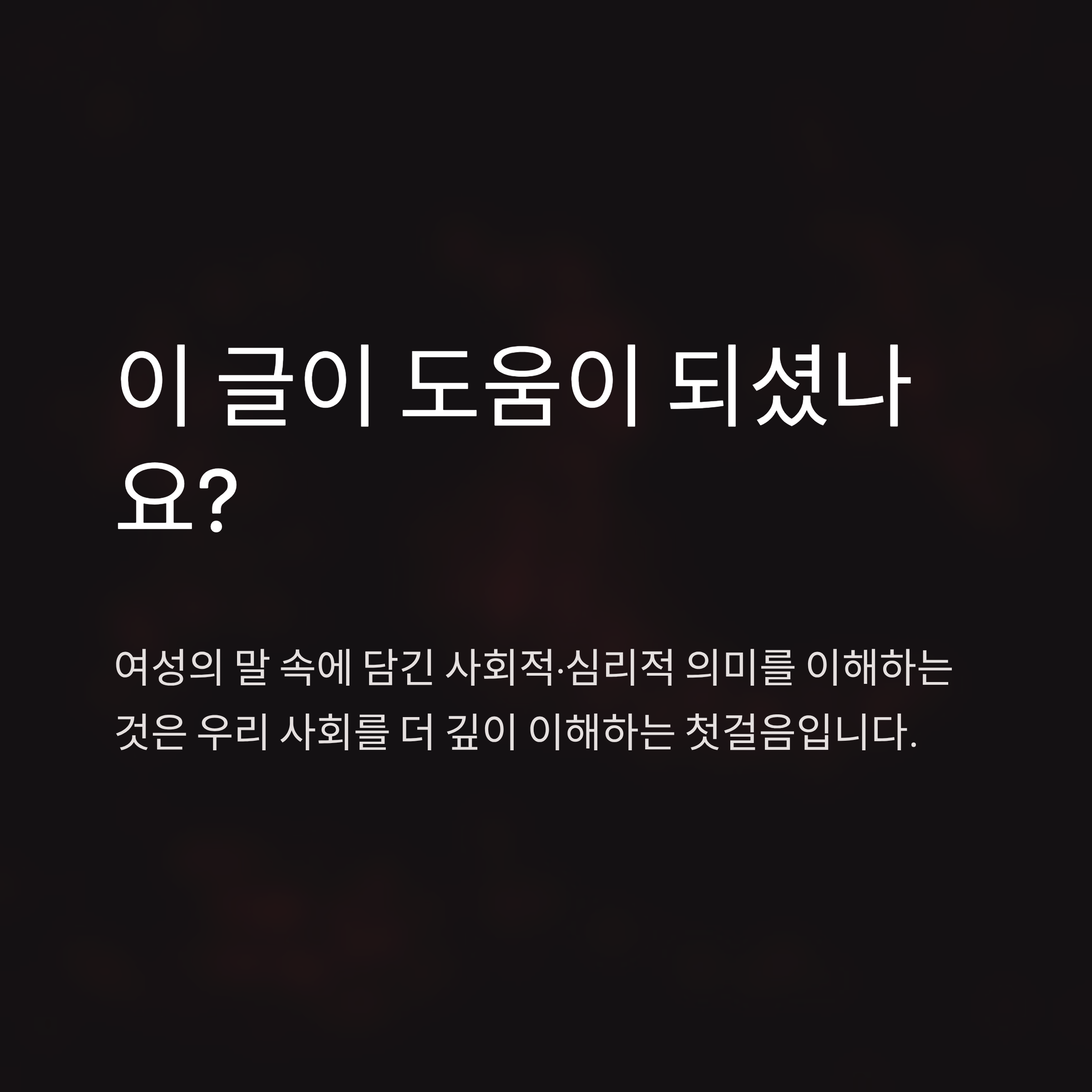 한편, 여성 스스로도 그런 표현을 통해 마음의 안정과 자긍심을 확인받는 심리적인 만족감을 얻습니다.
