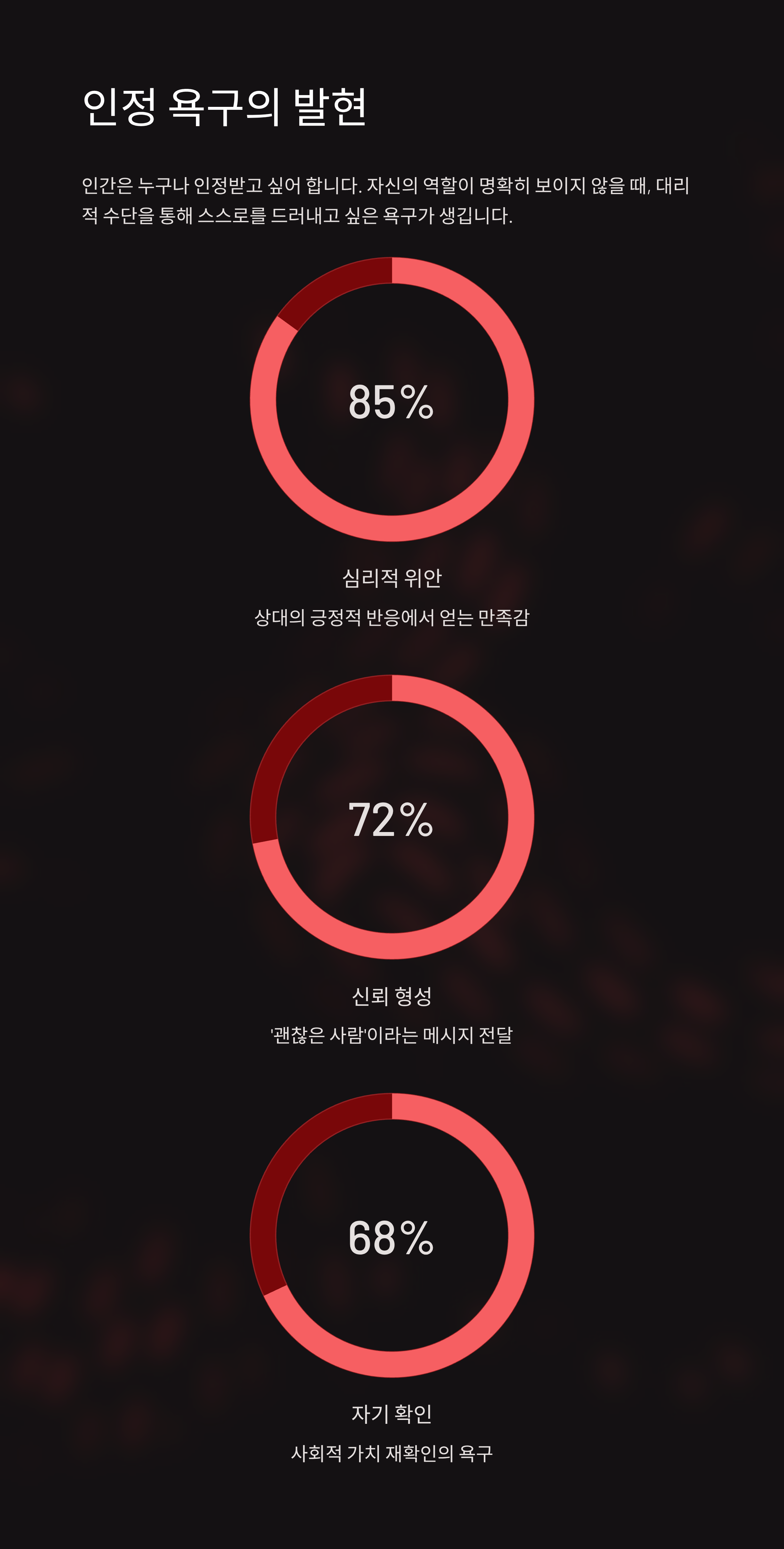 특히 자신의 역할이 명확히 보이지 않는 위치에 있을 때, 대리적 수단을 통해 스스로를 드러내고 싶은 욕구가 생기게 되죠.