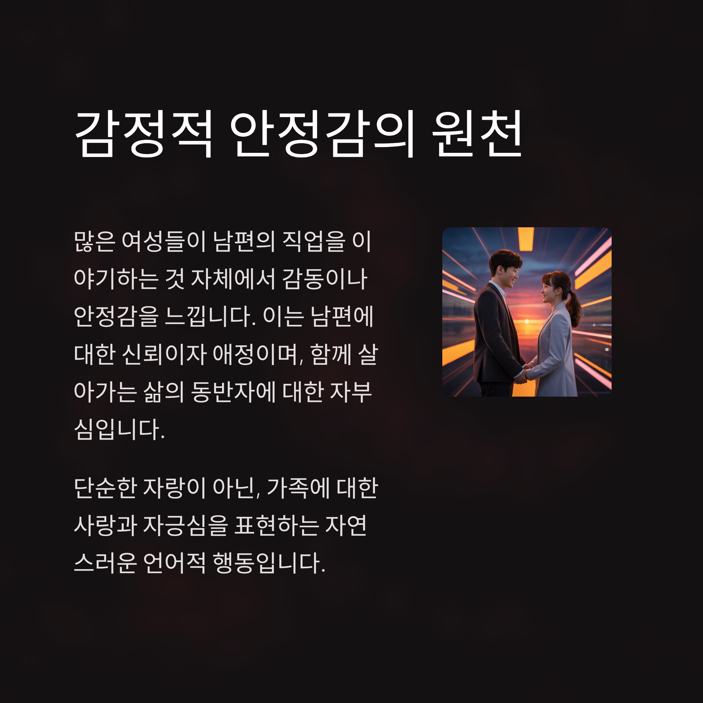 흥미롭게도, 많은 여성들이 '남편의 직업을 이야기하는 것' 자체에서 감동이나 안정감을 느낍니다.