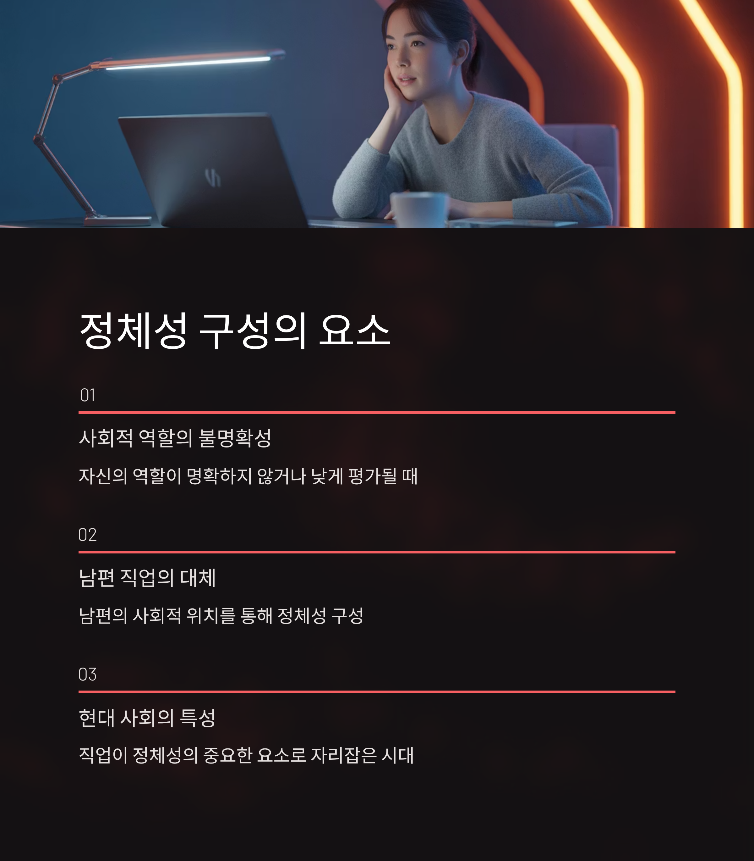 일부 여성들은 자신의 직업이나 사회적 역할보다 남편의 사회적 위치를 통해 정체성을 구성하려는 경향이 있습니다.