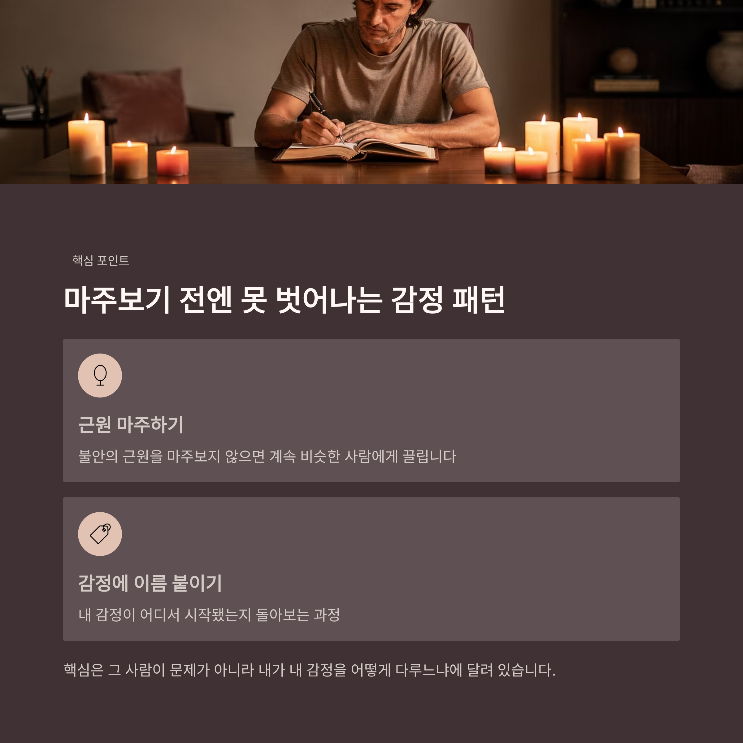 핵심은 그 사람이 문제가 아니라, 내가 내 감정을 어떻게 다루느냐에 달려 있습니다.