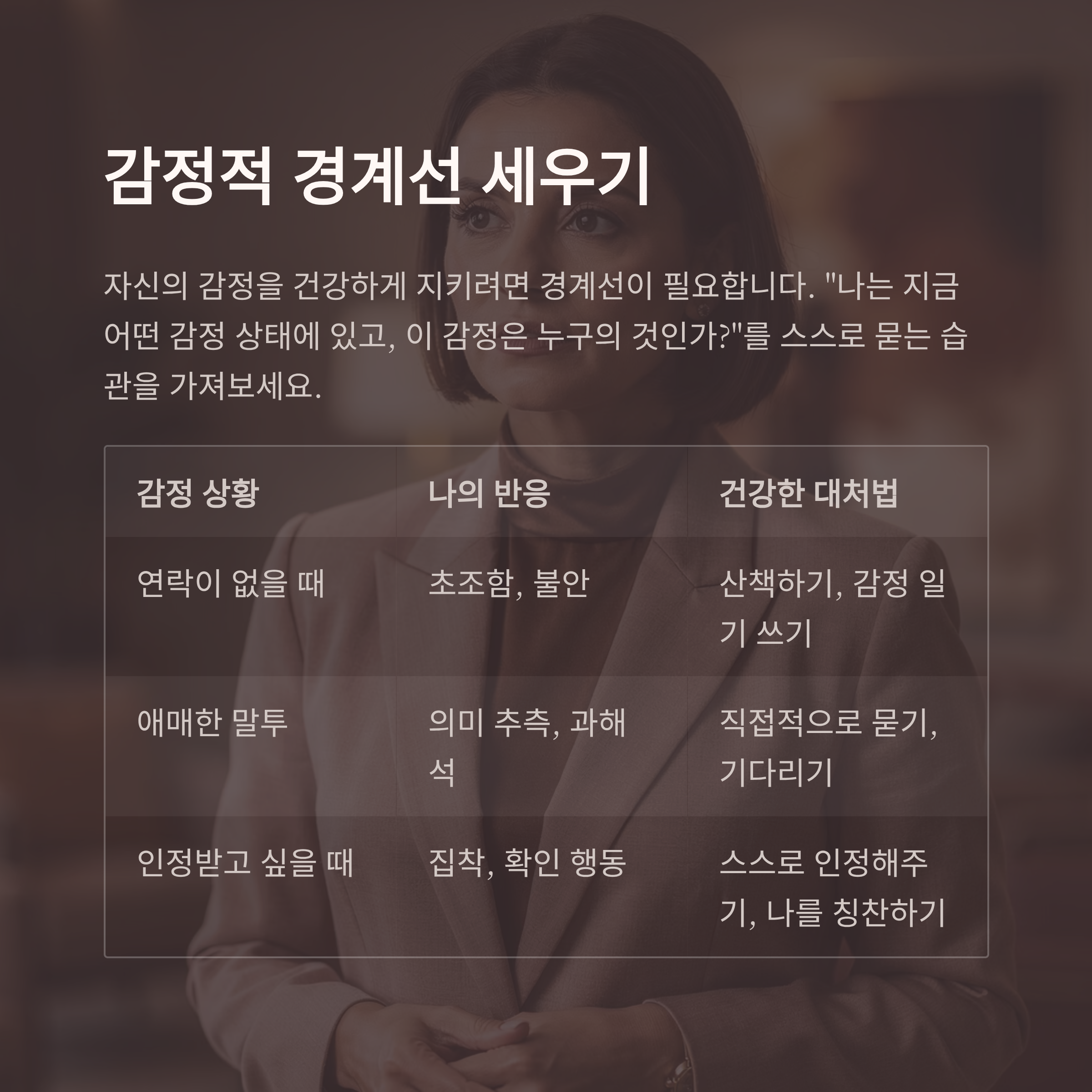 “나는 지금 어떤 감정 상태에 있고, 이 감정은 누구의 것인가?”를 스스로 묻는 습관을 가져보세요.
