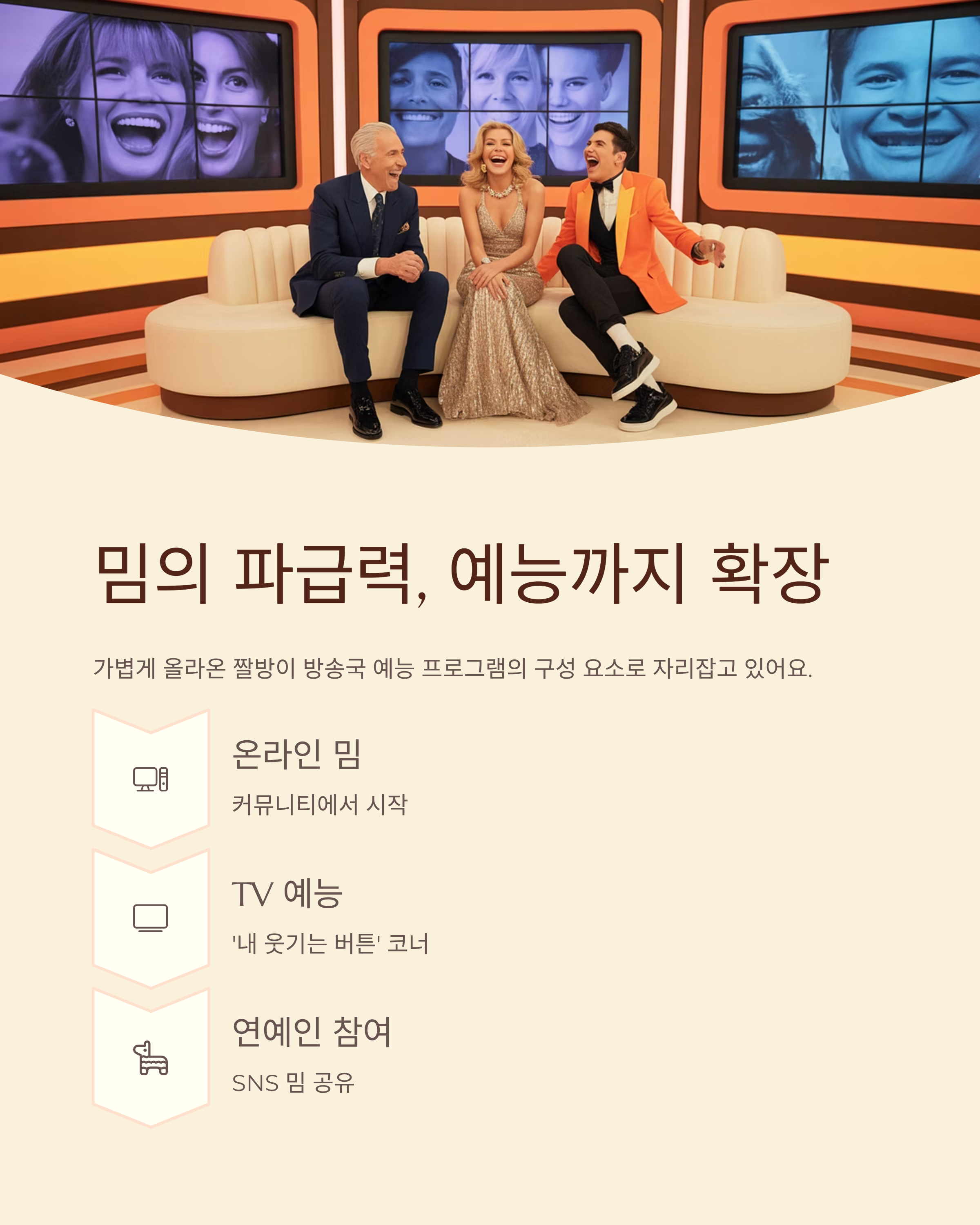 가볍게 올라온 짤방이나 밈이 어느새 방송국 예능 프로그램의 구성 요소로 자리 잡고 있어요.