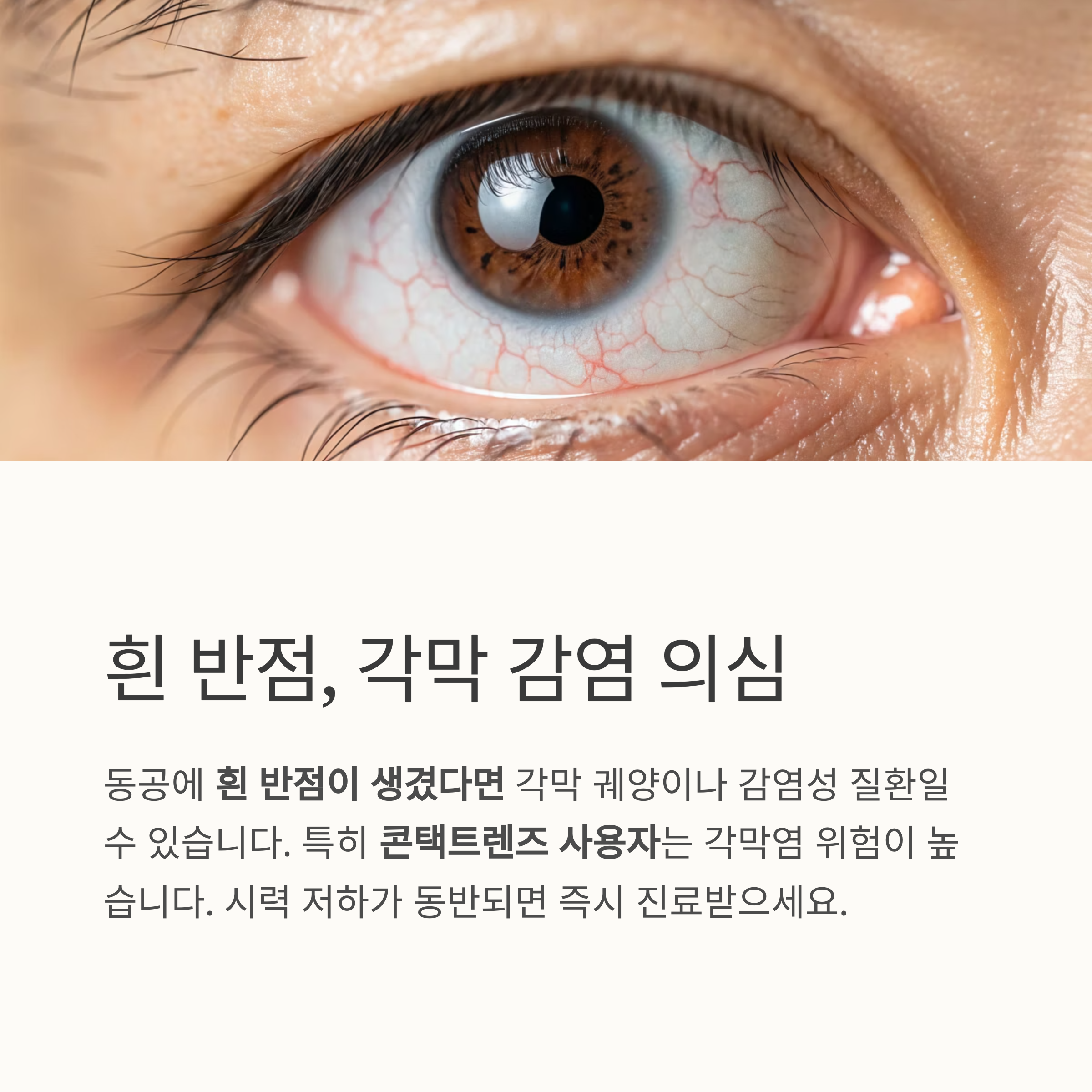 흰 반점이 보이면 각막 감염일 수 있습니다