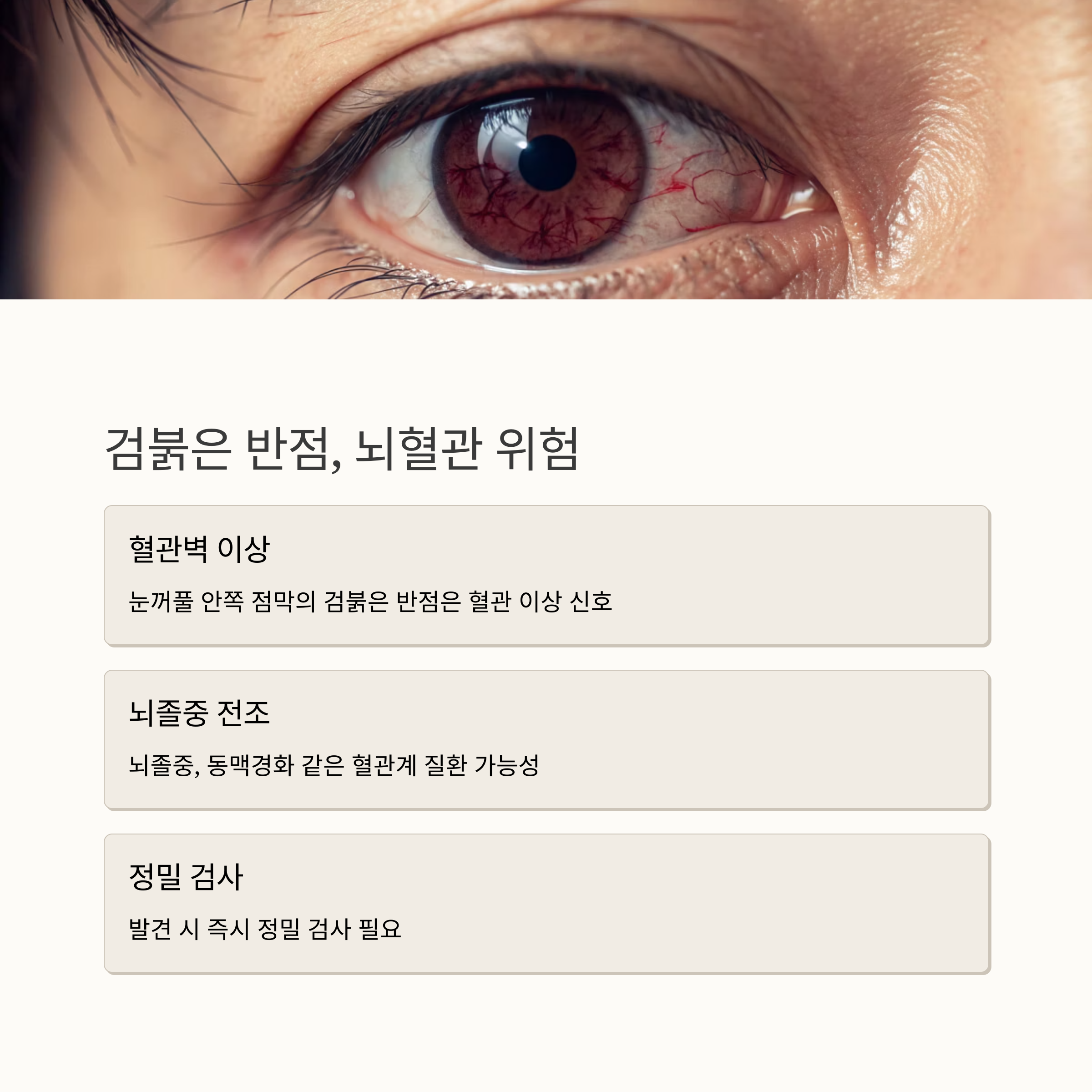 눈꺼풀 안쪽 점막에 자주 검붉은 반점이 생긴다면, 혈관벽에 이상이 생겼을 수 있습니다.