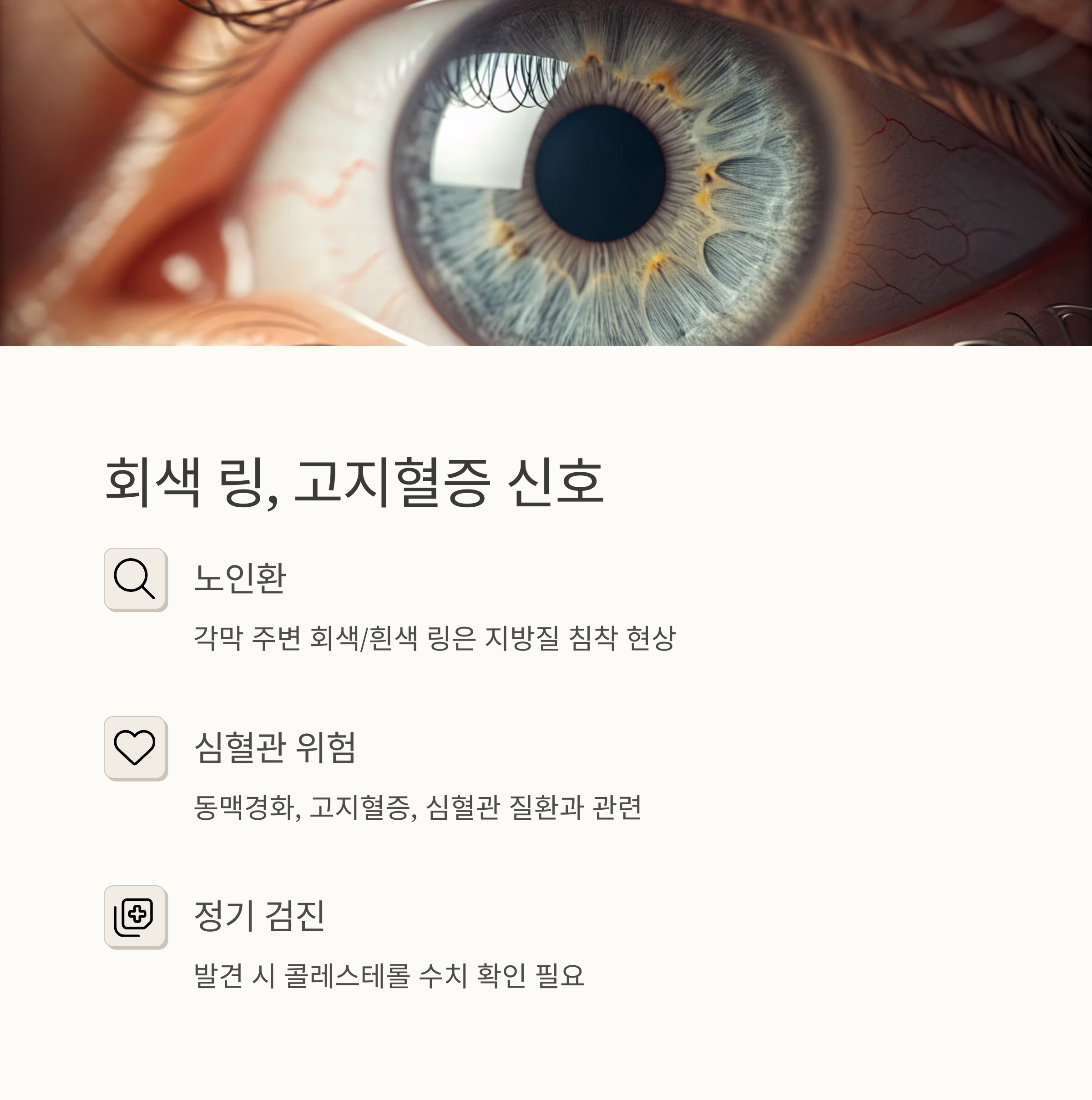 | 회색/흰색 링 | 고지혈증, 동맥경화, 심혈관 질환 |