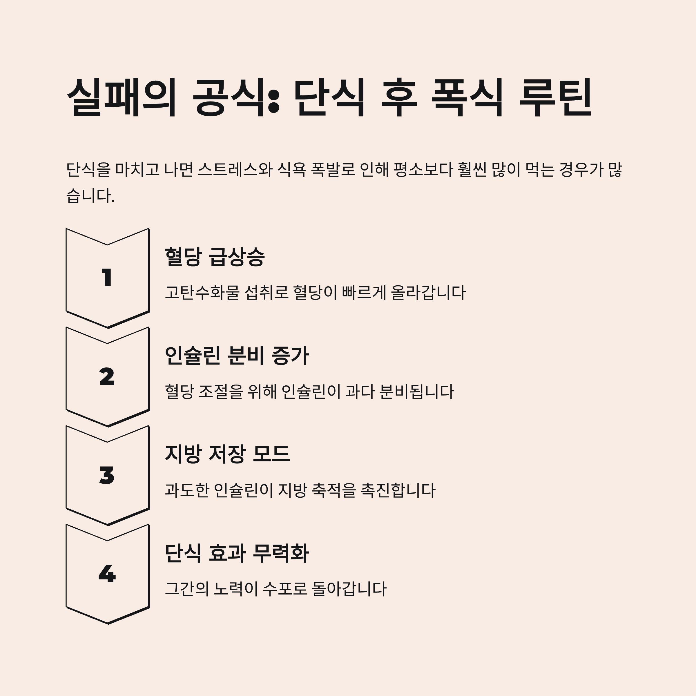 이는 호르몬 불균형, 식욕 통제 저하, 스트레스 증가로 이어지며 단식 실패로 연결됩니다.