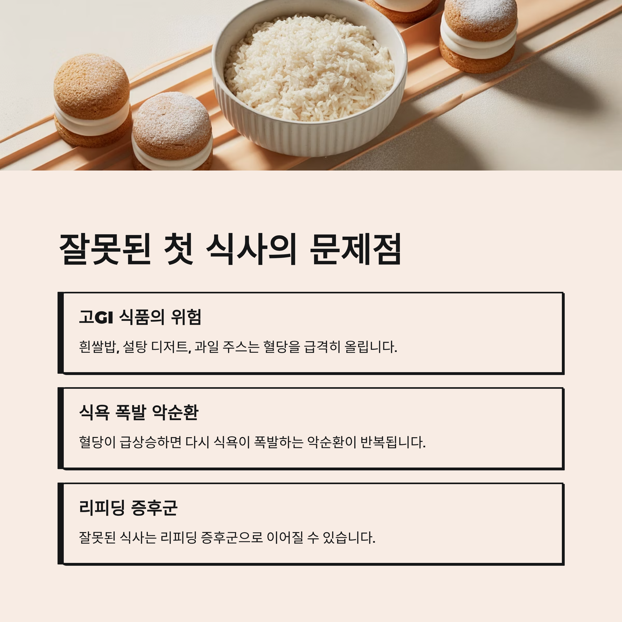 즉, 첫 식사가 몸에 주는 메시지는 "앞으로도 이렇게 먹을 거야"라는 신호가 되는 거죠.