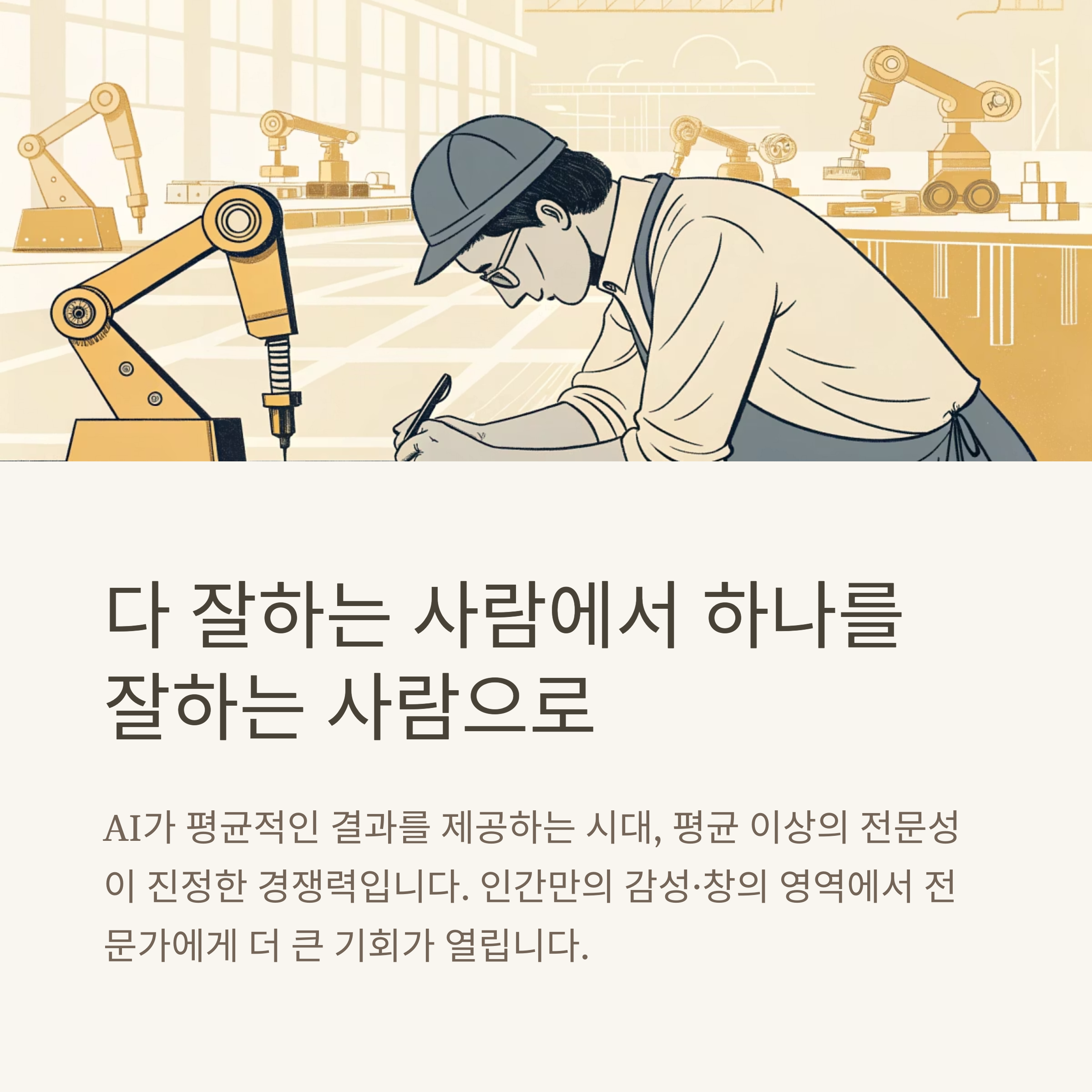 AI가 평균적인 결과를 빠르게 제공할 수 있는 시대, 평균 이상의 전문성이 바로 경쟁력입니다.