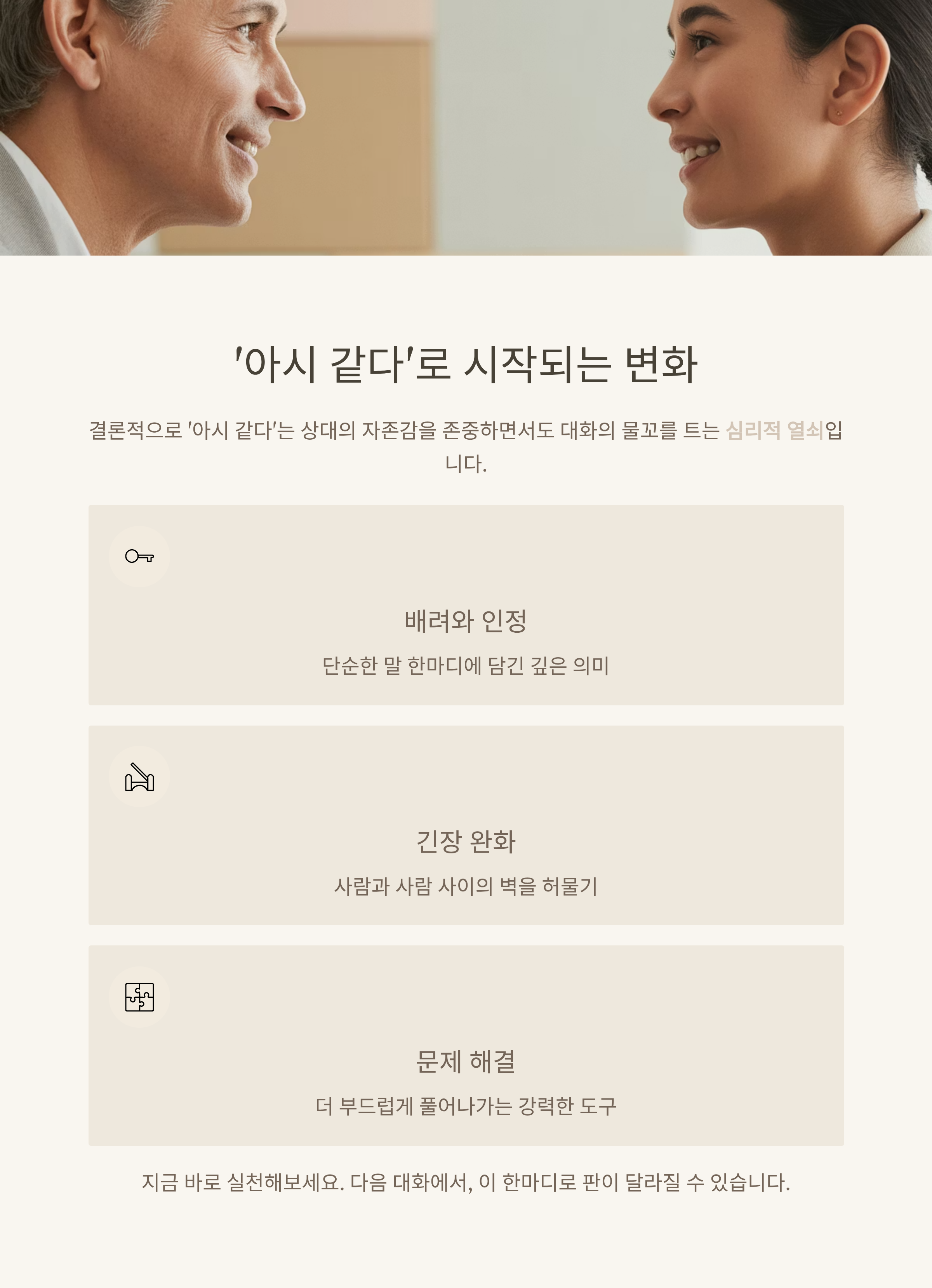 대화의 판을 바꾸는 마법의 단어, ‘아시 같다’의 심리 기술