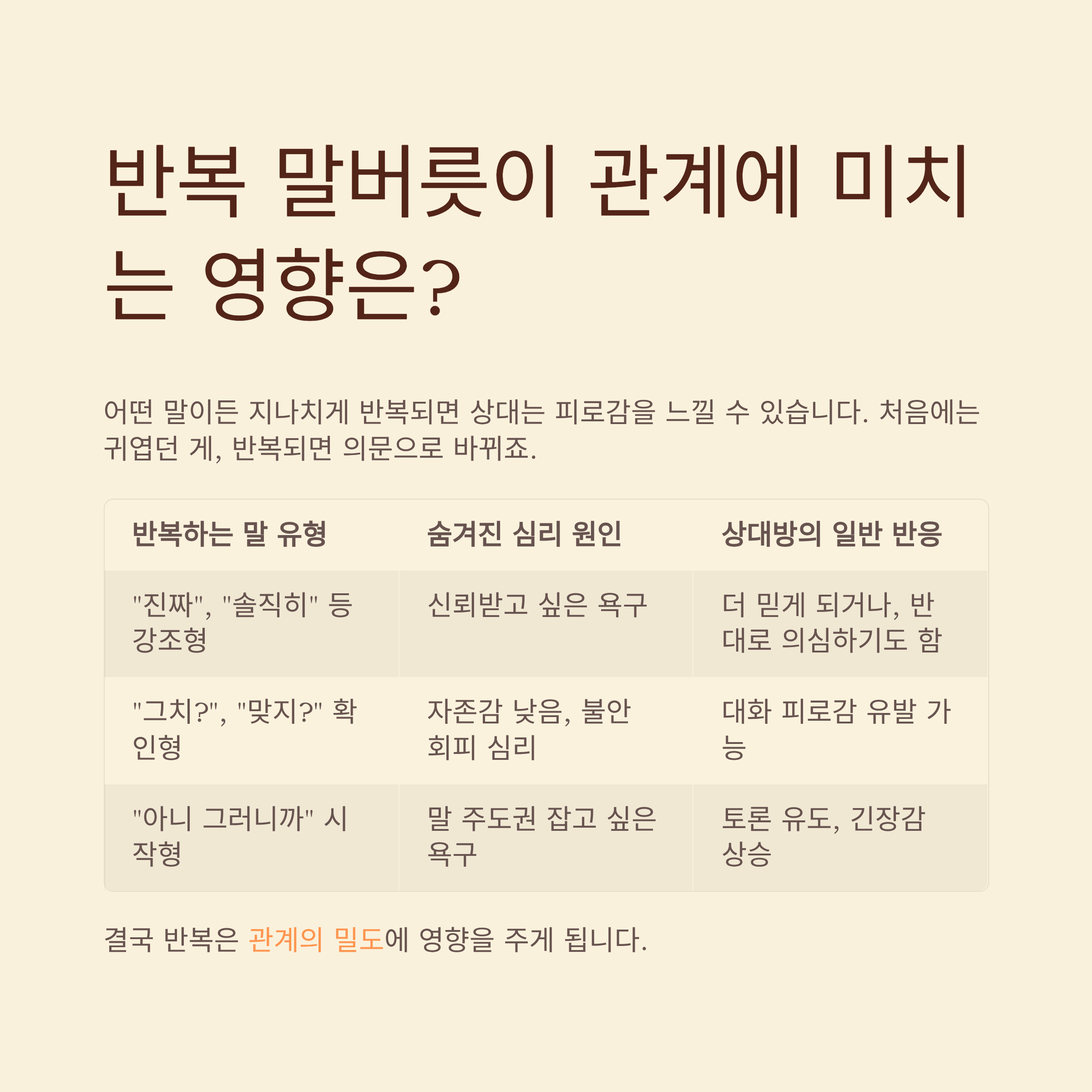 반복하는 말 유형숨겨진 심리 원인상대방의 일반 반응