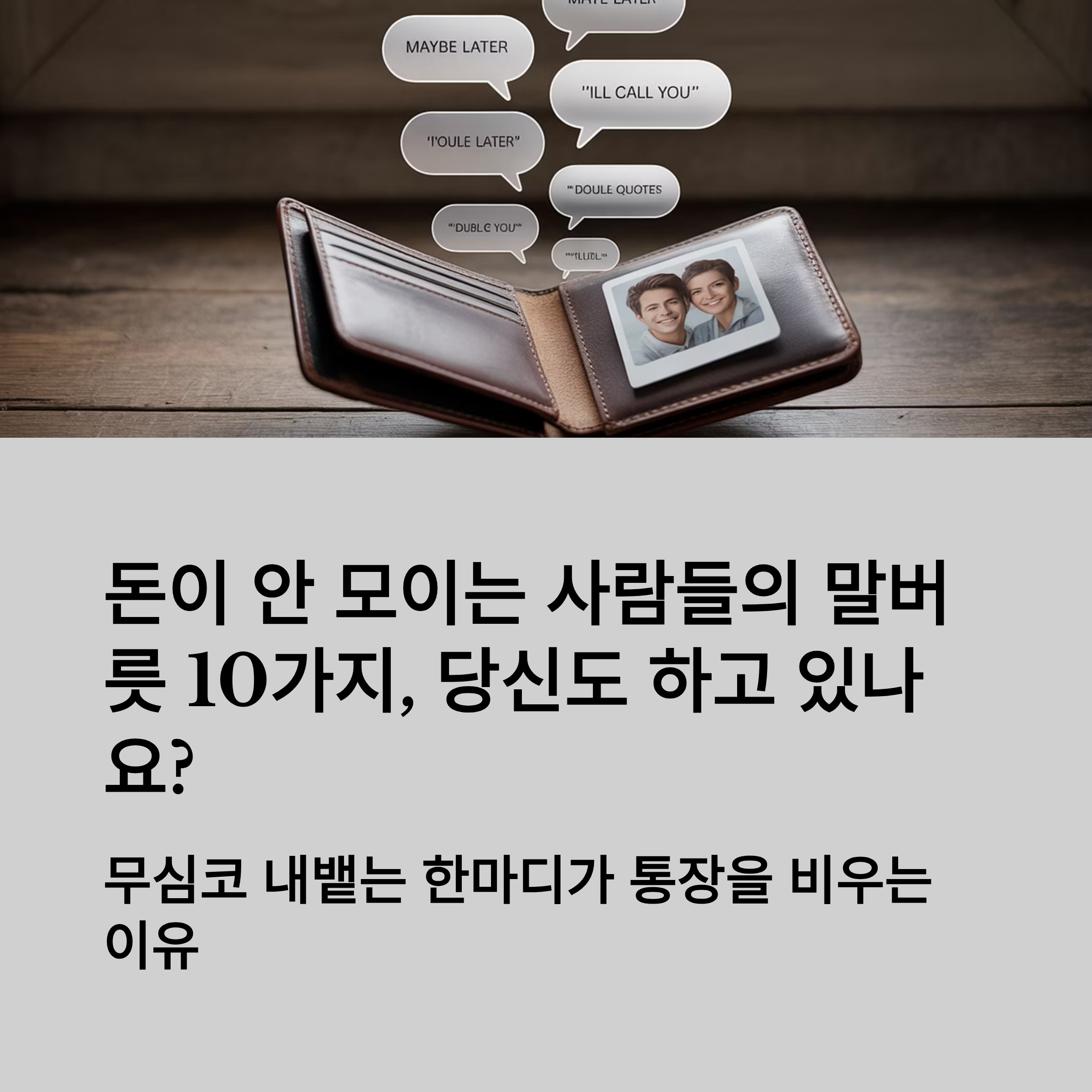 이번 글에서는 돈이 새는 10가지 대표 말버릇과 그 심리적 함정을 알아봅니다.