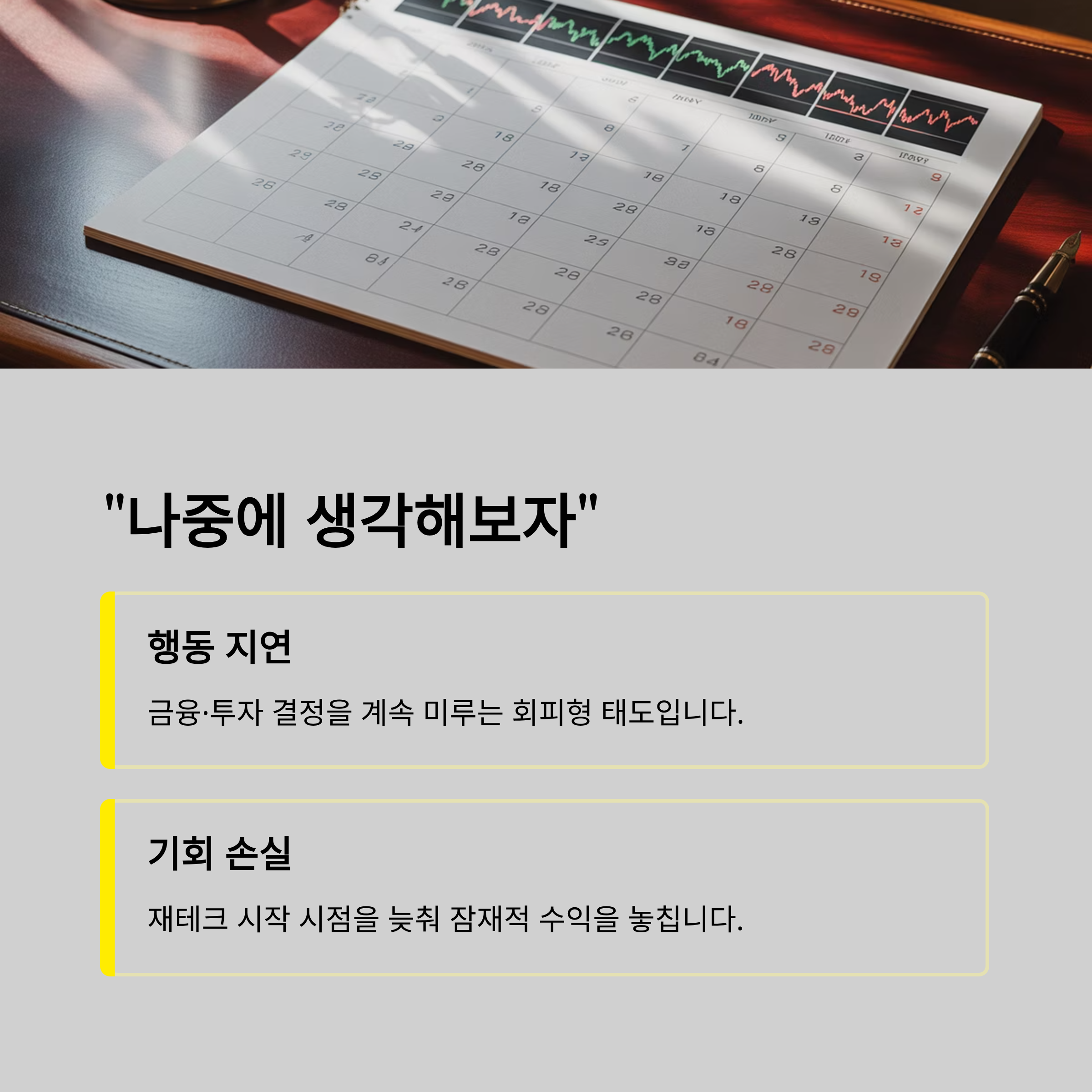 행동 지연은 곧 기회 손실로 이어지고, 재테크 시작 시점을 계속 늦추는