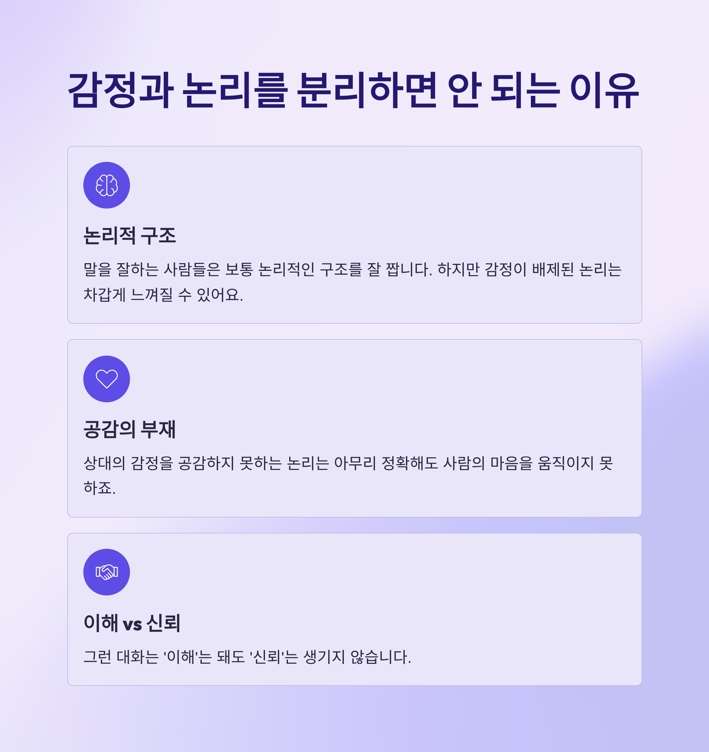 하지만 감정이 배제된 논리는 차갑게 느껴질 수 있어요.