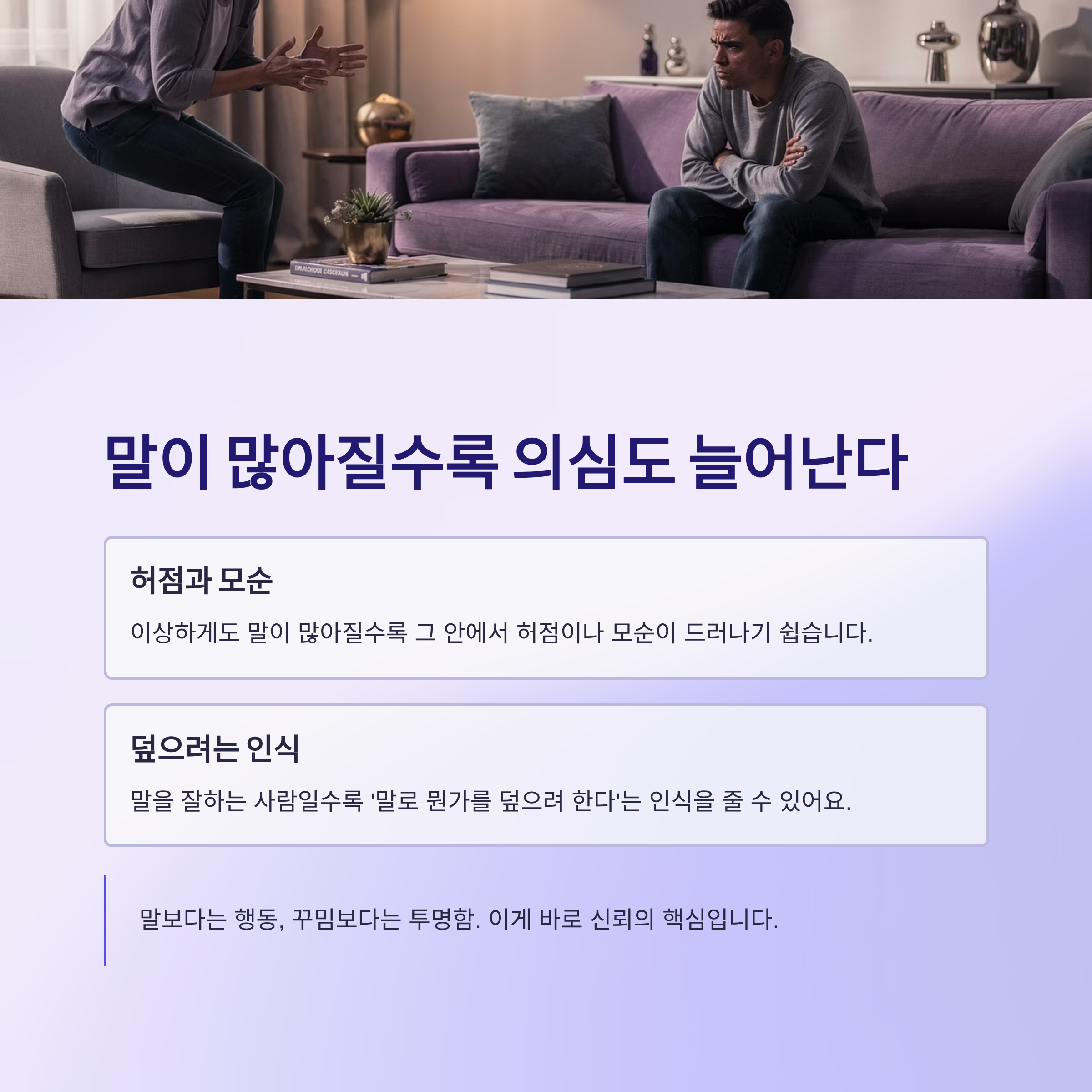말을 잘하는 사람은 언제나 주목받습니다. 설득력 있게 이야기하고, 상황에 맞게 분위기를 주도하며, 듣는 이로 하여금 ‘와, 똑똑하다’는 감탄까지 끌어내기도 하죠. 그런데 아이러니하게도, 그런 사람일수록 신뢰는 오히려 멀어질 수 있다는 사실, 알고 계셨나요?