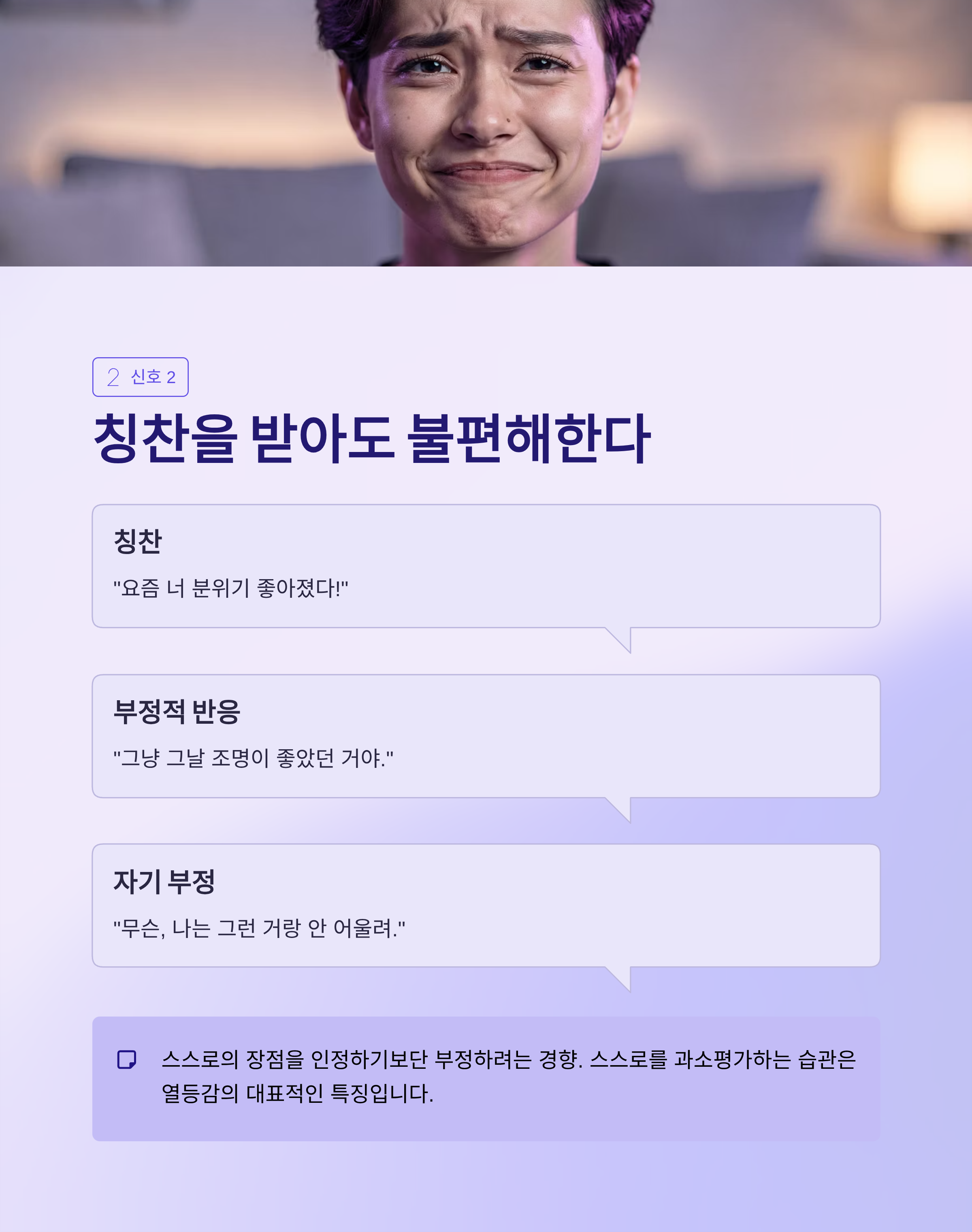 대화 중 이런 반응이 반복된다면, 열등감의 표현일 수 있어요