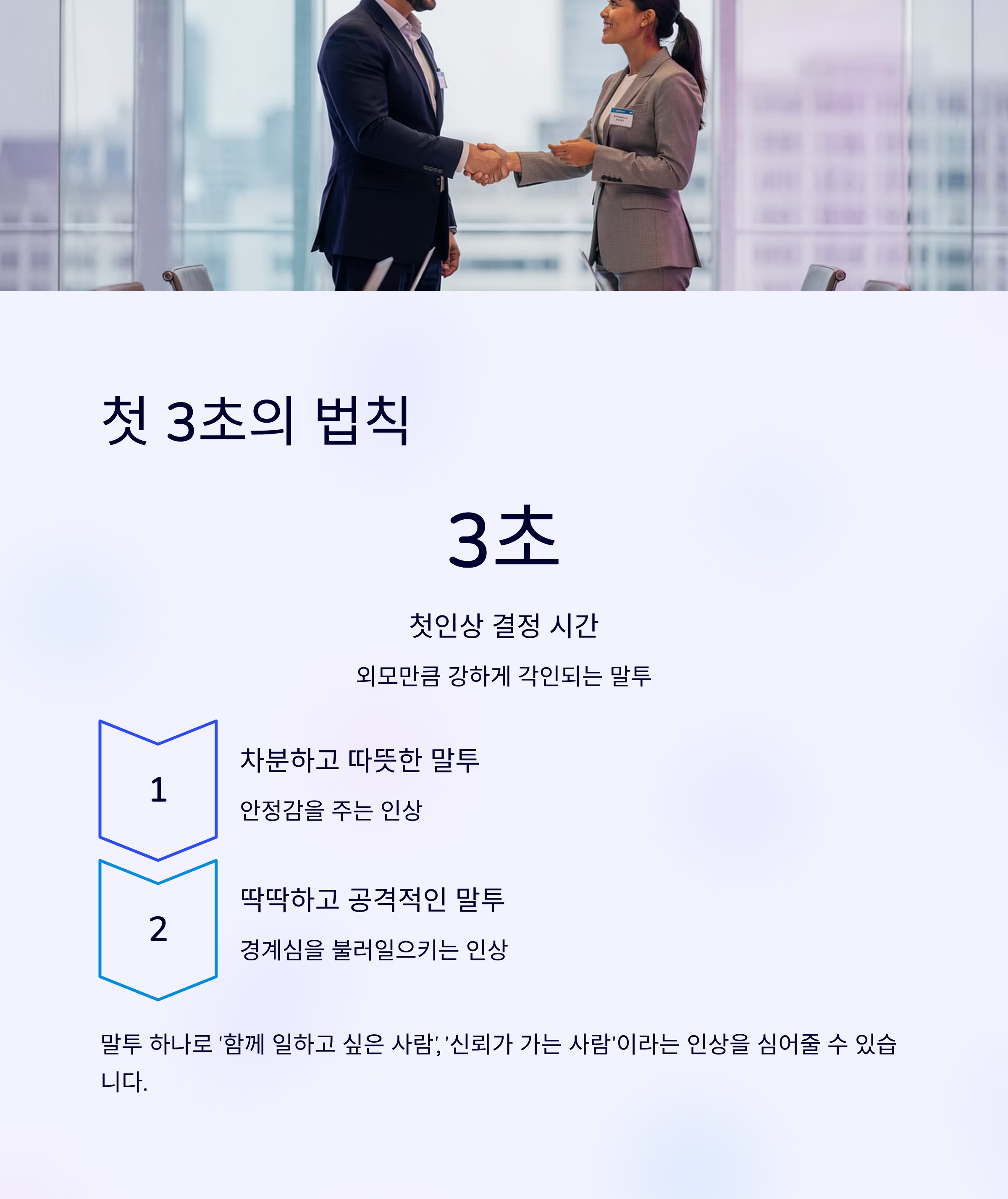 당신의 첫인상, 관계의 질, 업무 능력까지 좌우하는 핵심 커뮤니케이션 수단이죠.