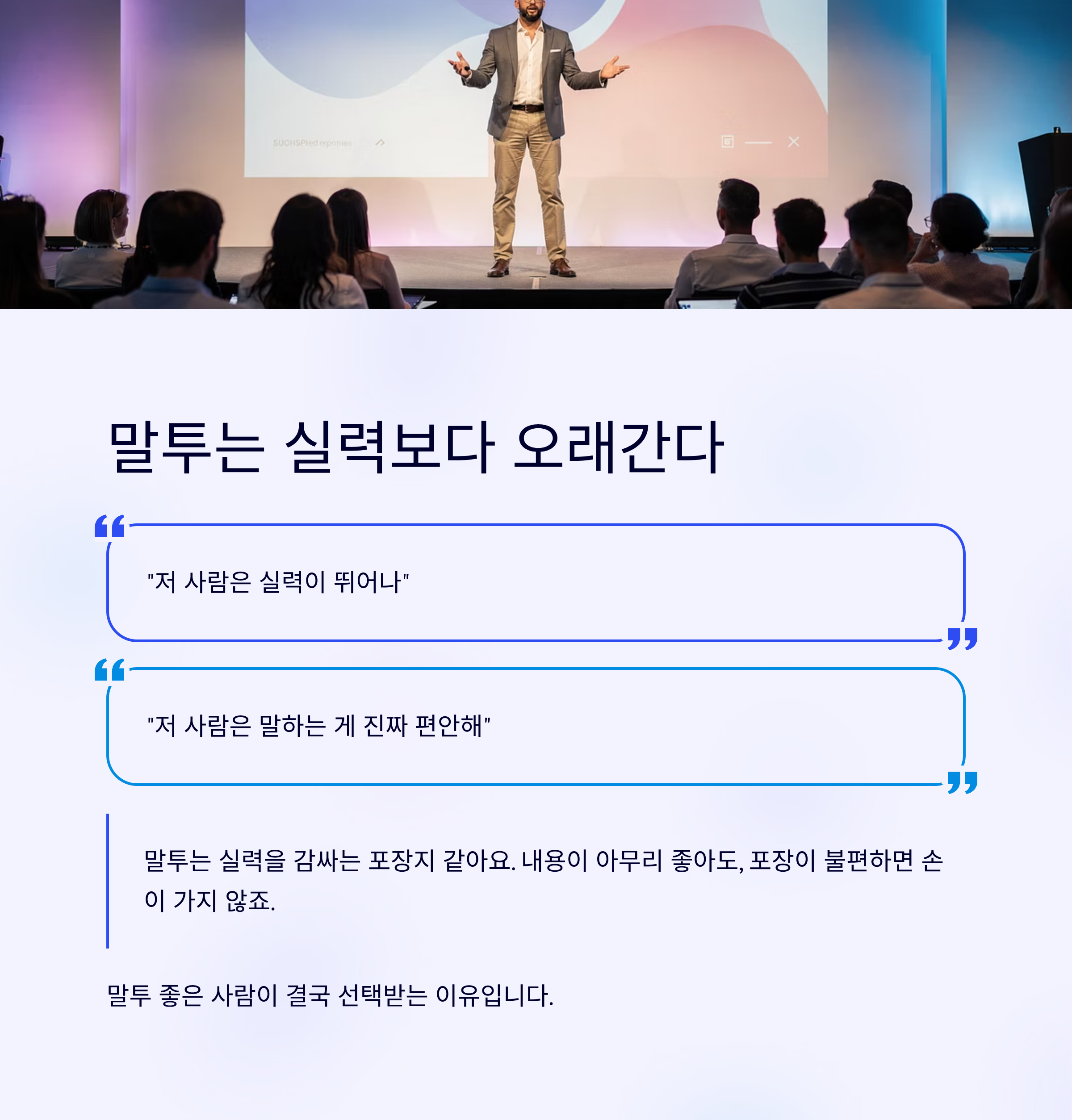 신기하게도, 어떤 분야의 실력보다도 말투가 더 오랫동안 기억되는 경우가 많습니다.