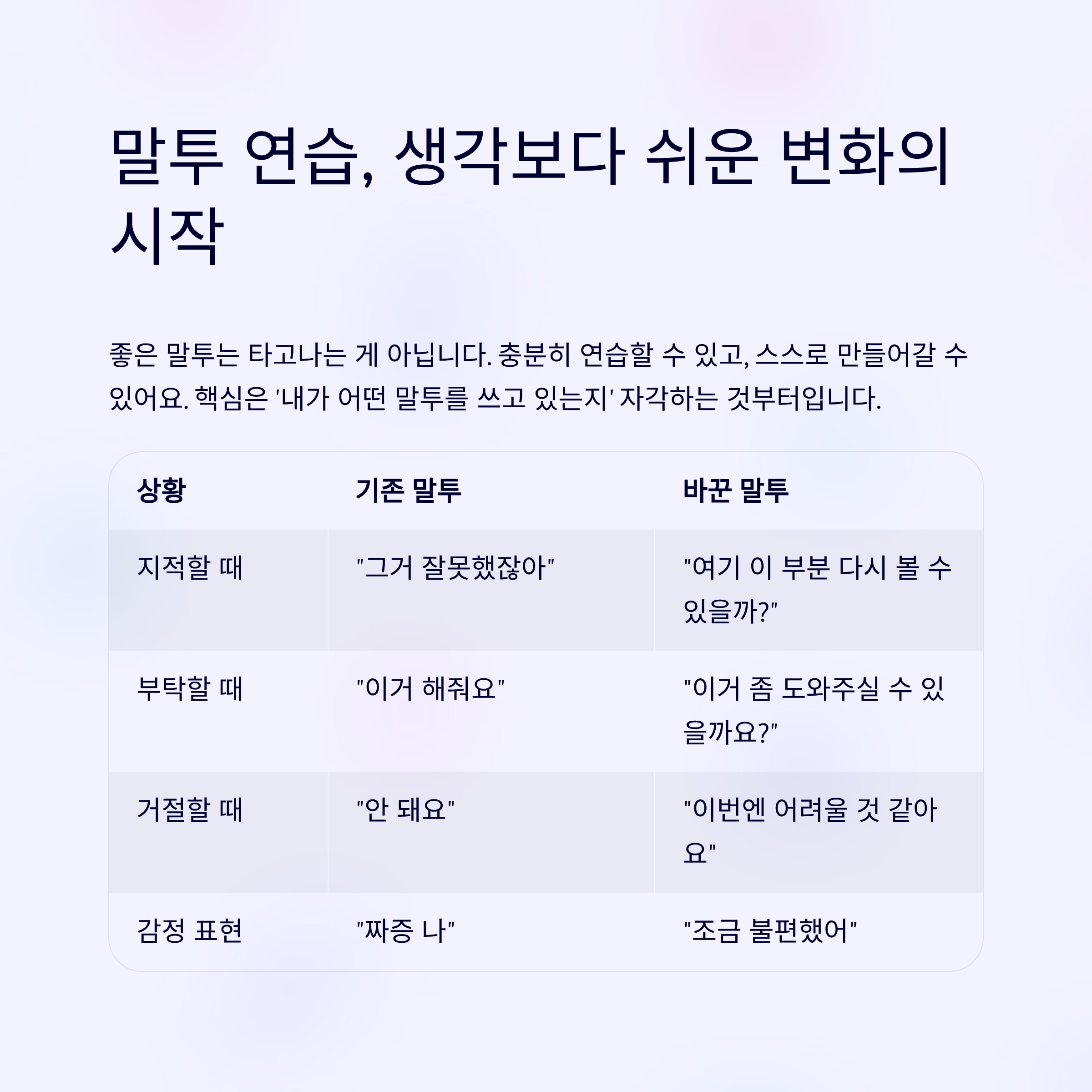 핵심은 '내가 어떤 말투를 쓰고 있는지' 자각하는 것부터입니다.