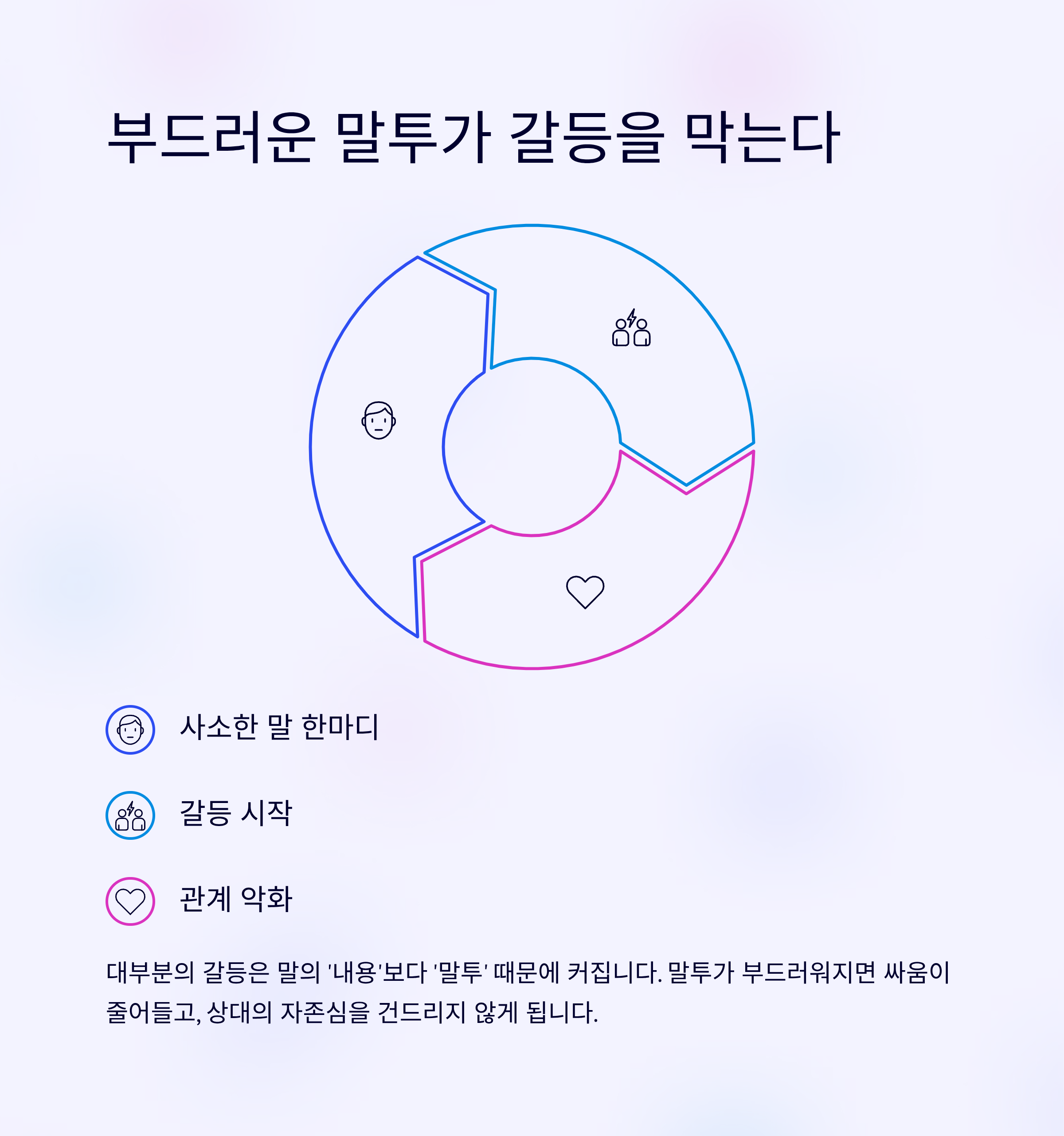 그리고 대부분의 갈등은 말의 '내용'보다 '말투' 때문에 커집니다.