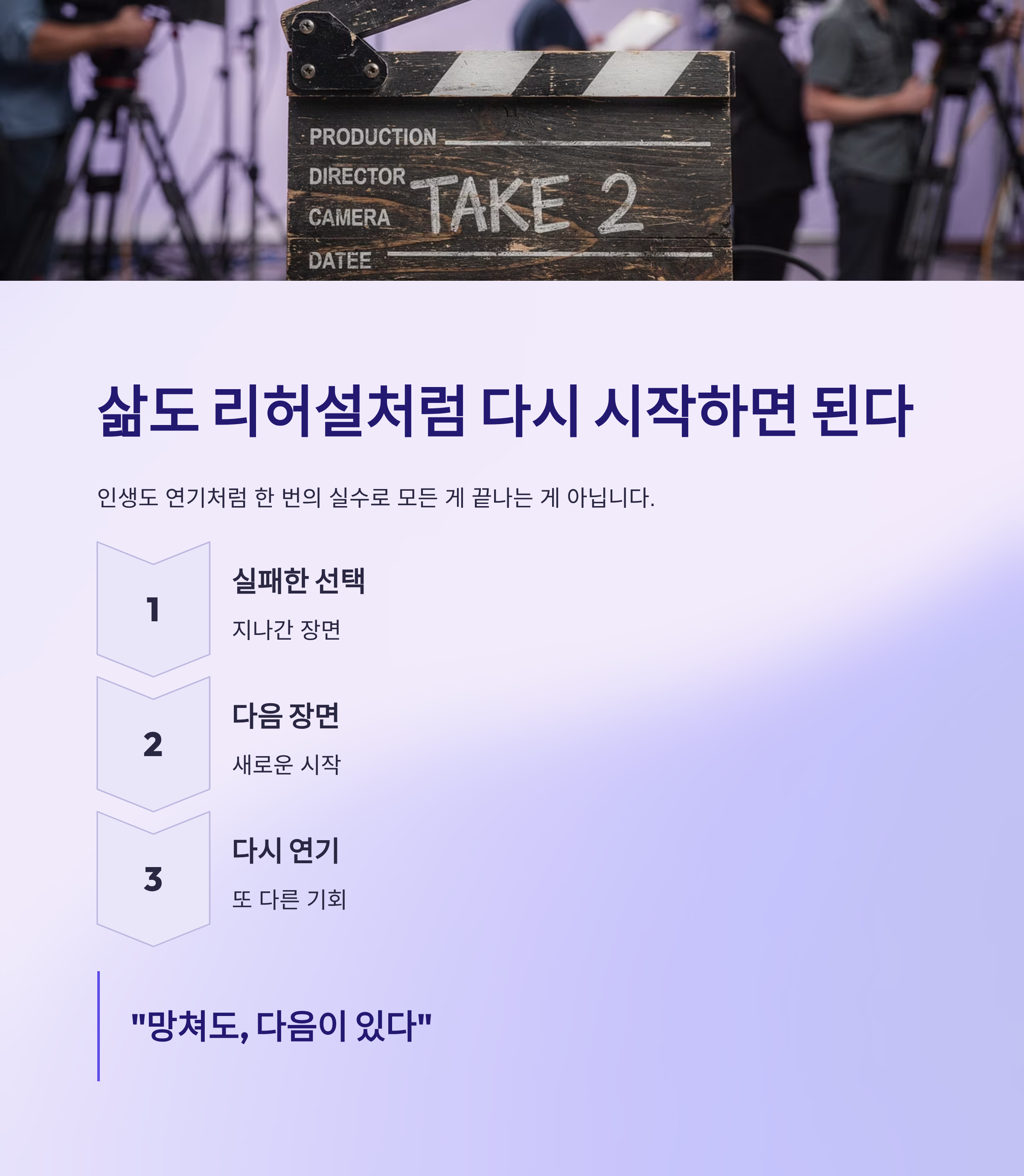 인생도 연기처럼 한 번의 실수로 모든 게 끝나는 게 아닙니다.