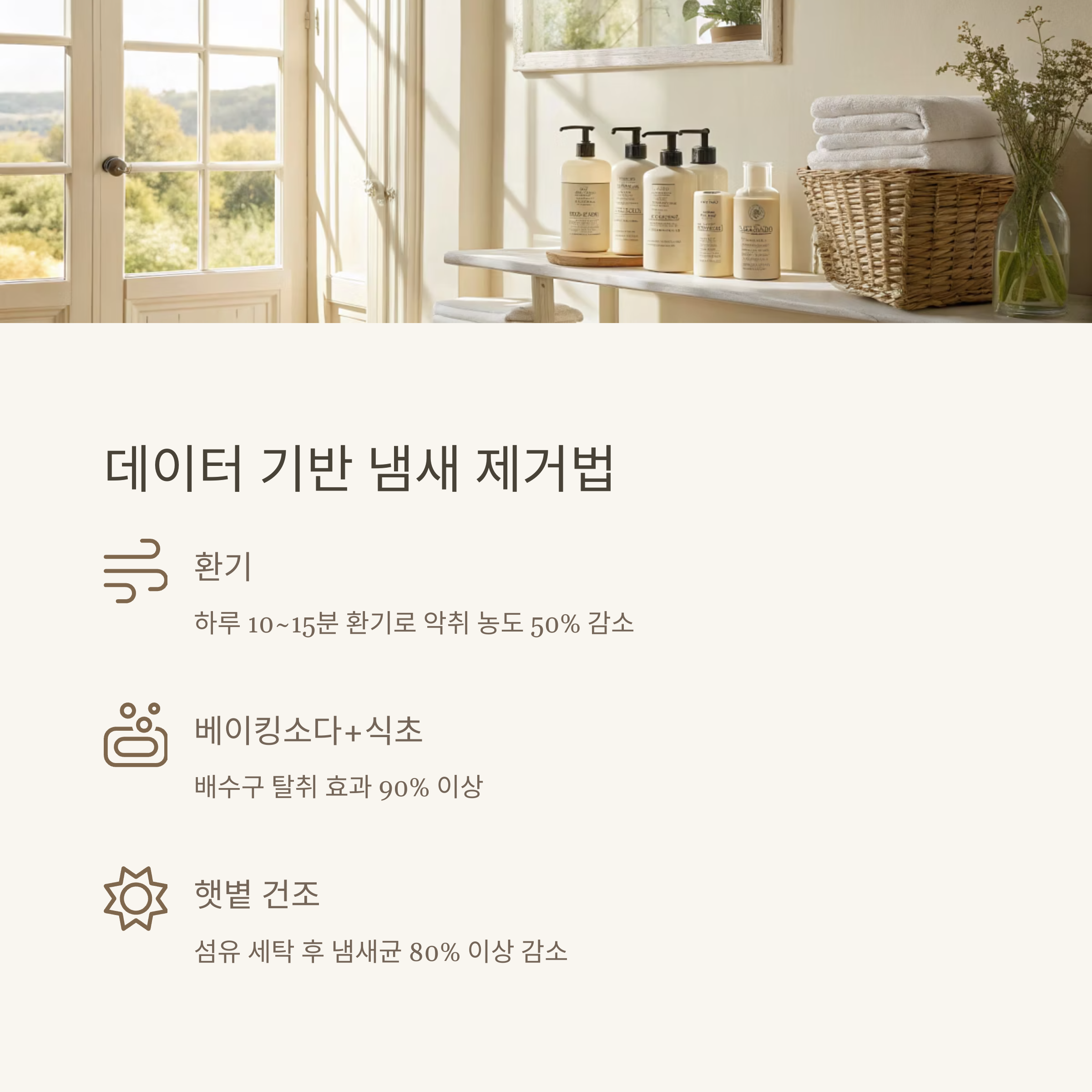 | 환기 | 하루 15분×2회 | 악취 50% 감소 |