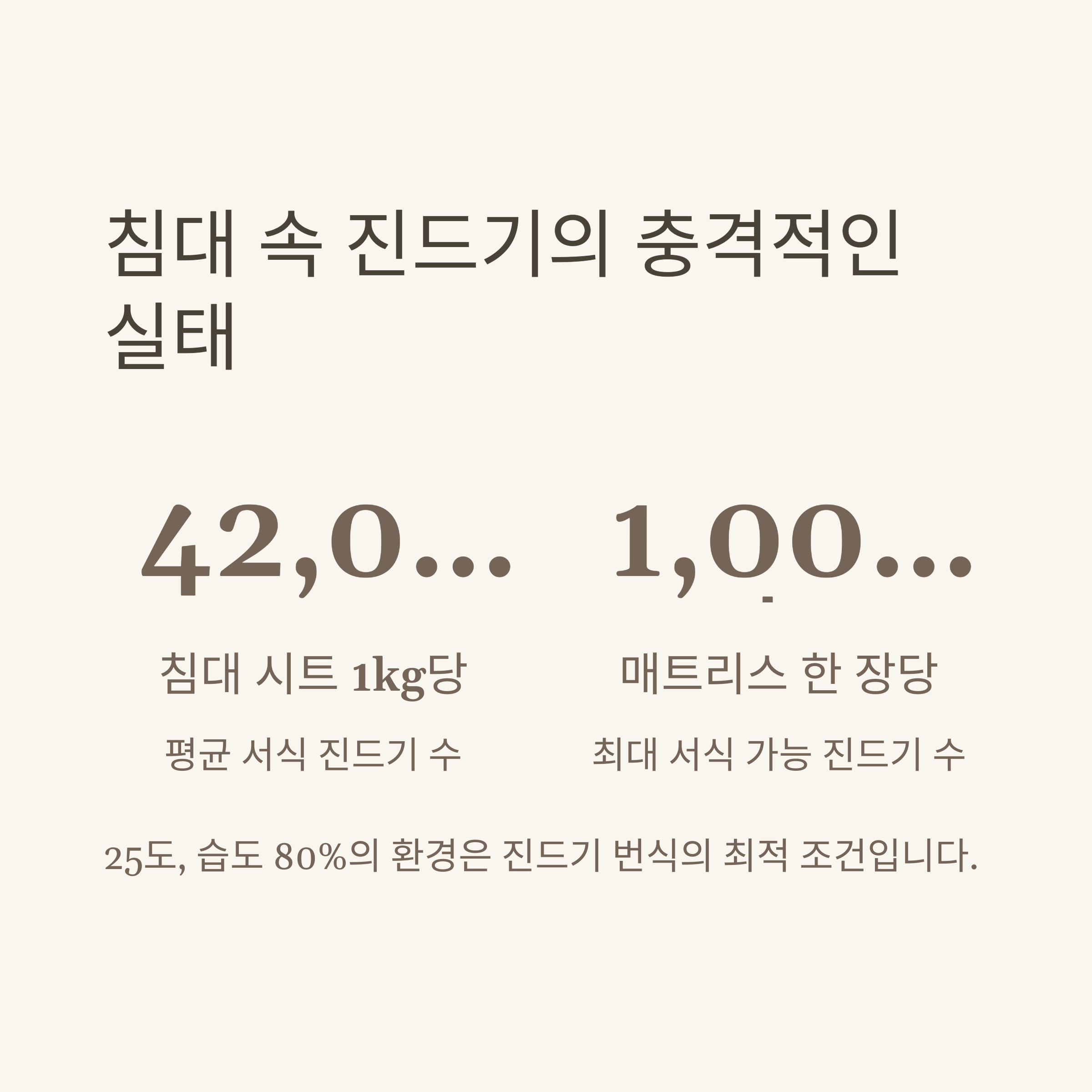 침대 시트 1kg에는 약 42,000마리, 매트리스 한 장엔 최대 1,000만 마리