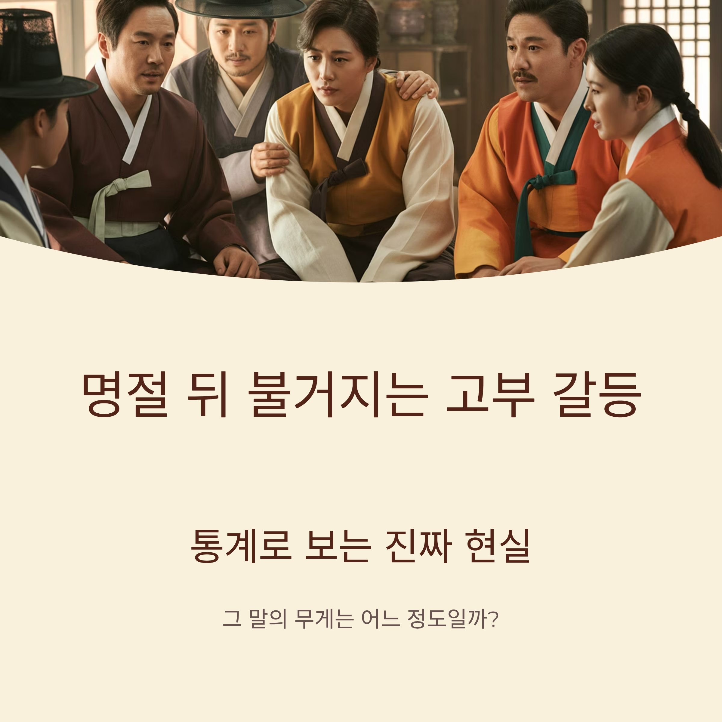 명절이 끝나면 들려오는 고부 갈등의 이야기들. 그저 ‘감정싸움’으로 치부하기엔 통계가 말해주는 현실은 꽤 무겁습니다. 시어머니의 독설, 며느리의 눈물, 그리고 그 사이에서 아무것도 하지 않는 배우자. 이 글에서는 명절 후 폭발하는 갈등의 수치와 구조적 원인을 분석하고, 고부관계를 바라보는 시각의 전환점을 제안합니다.