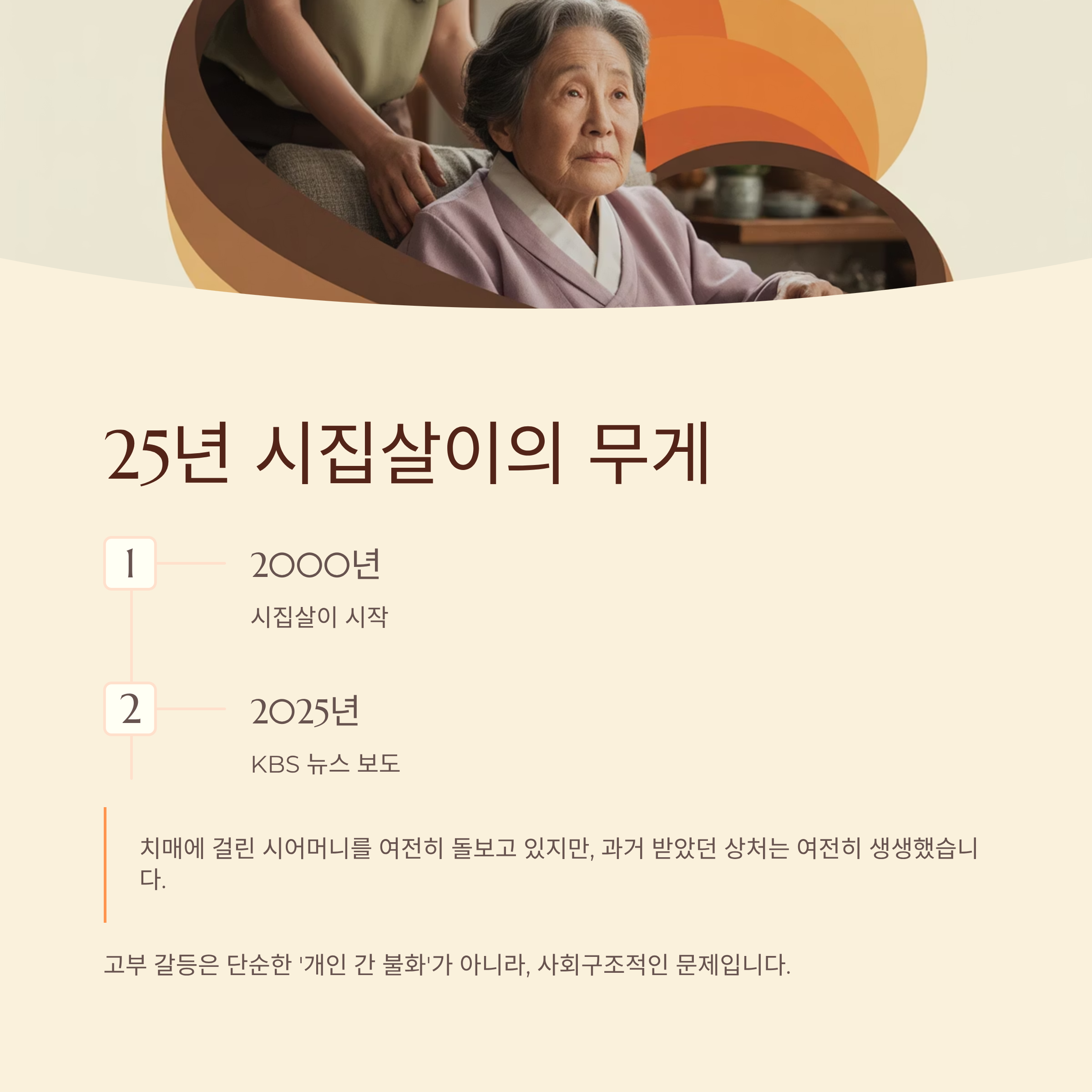 2025년 5월, KBS 뉴스에서는 무려 25년간 시집살이를 견뎌온 며느리의 사연이 보도됐습니다.