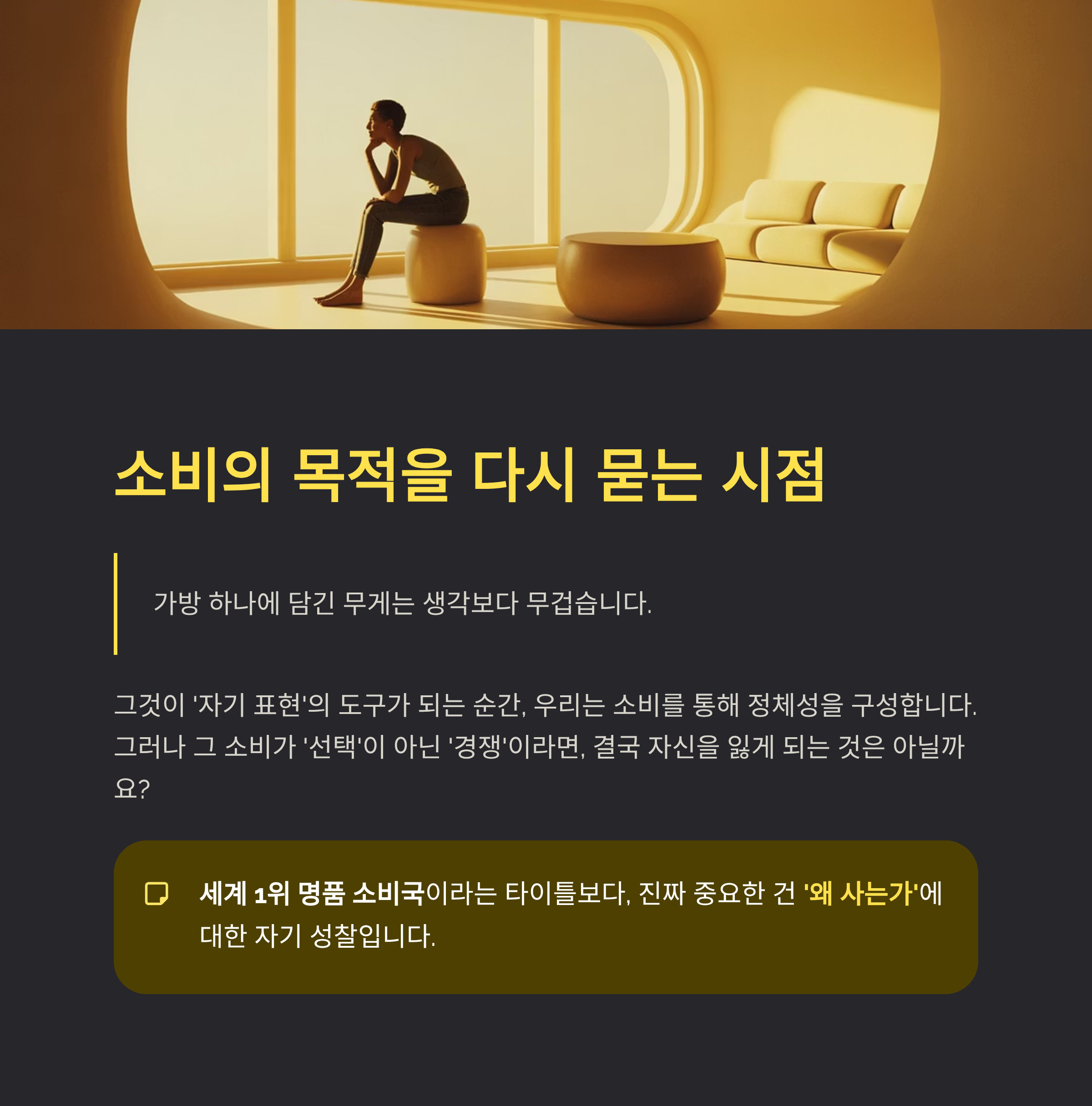 세계 1위 명품 소비국이라는 타이틀보다, 진짜 중요한 건 ‘왜 사는가’에 대한 자기 성찰입니다.