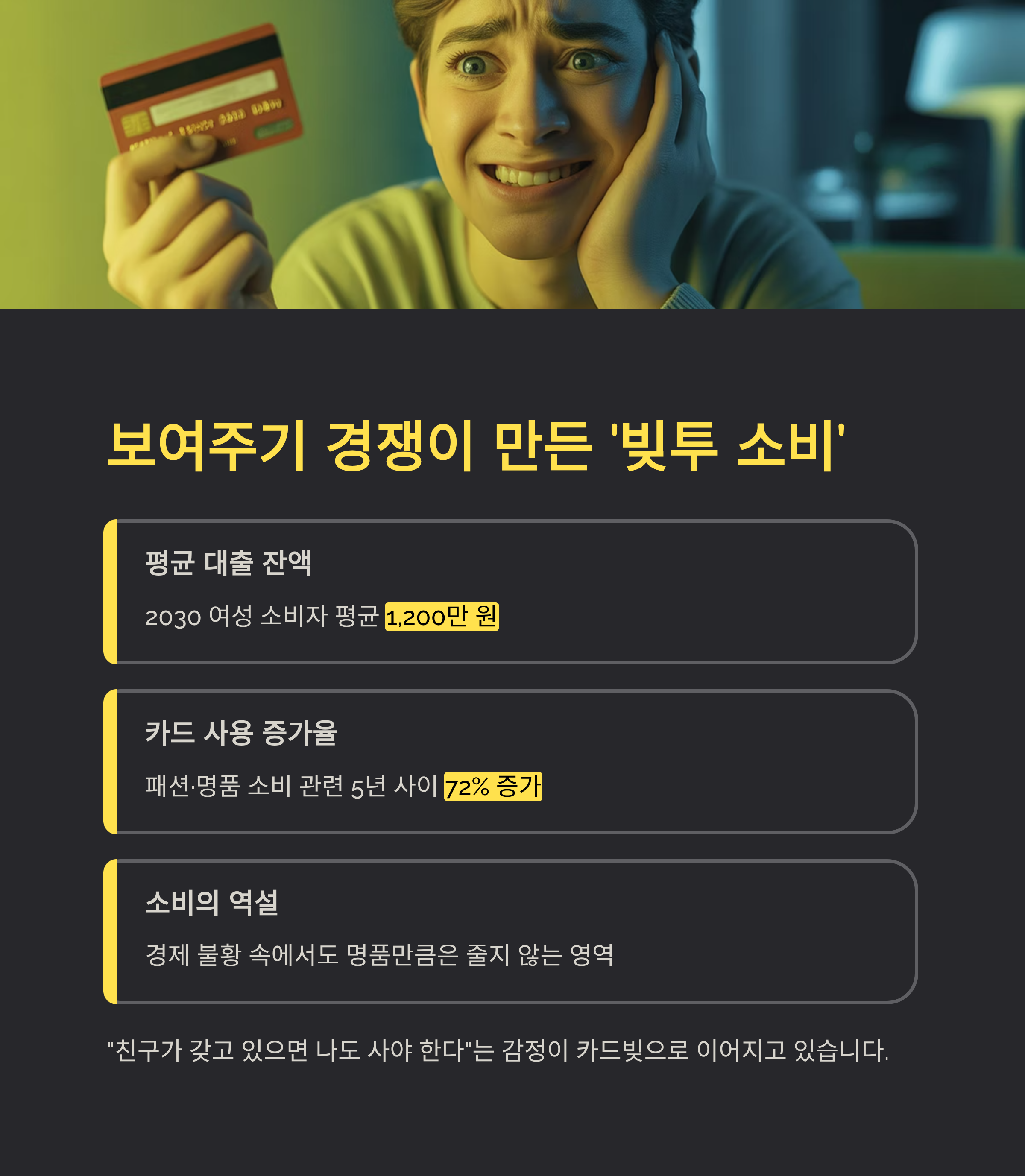 "친구가 갖고 있으면 나도 사야 한다"는 감정은 이제 카드빚으로 이어지고 있습니다.