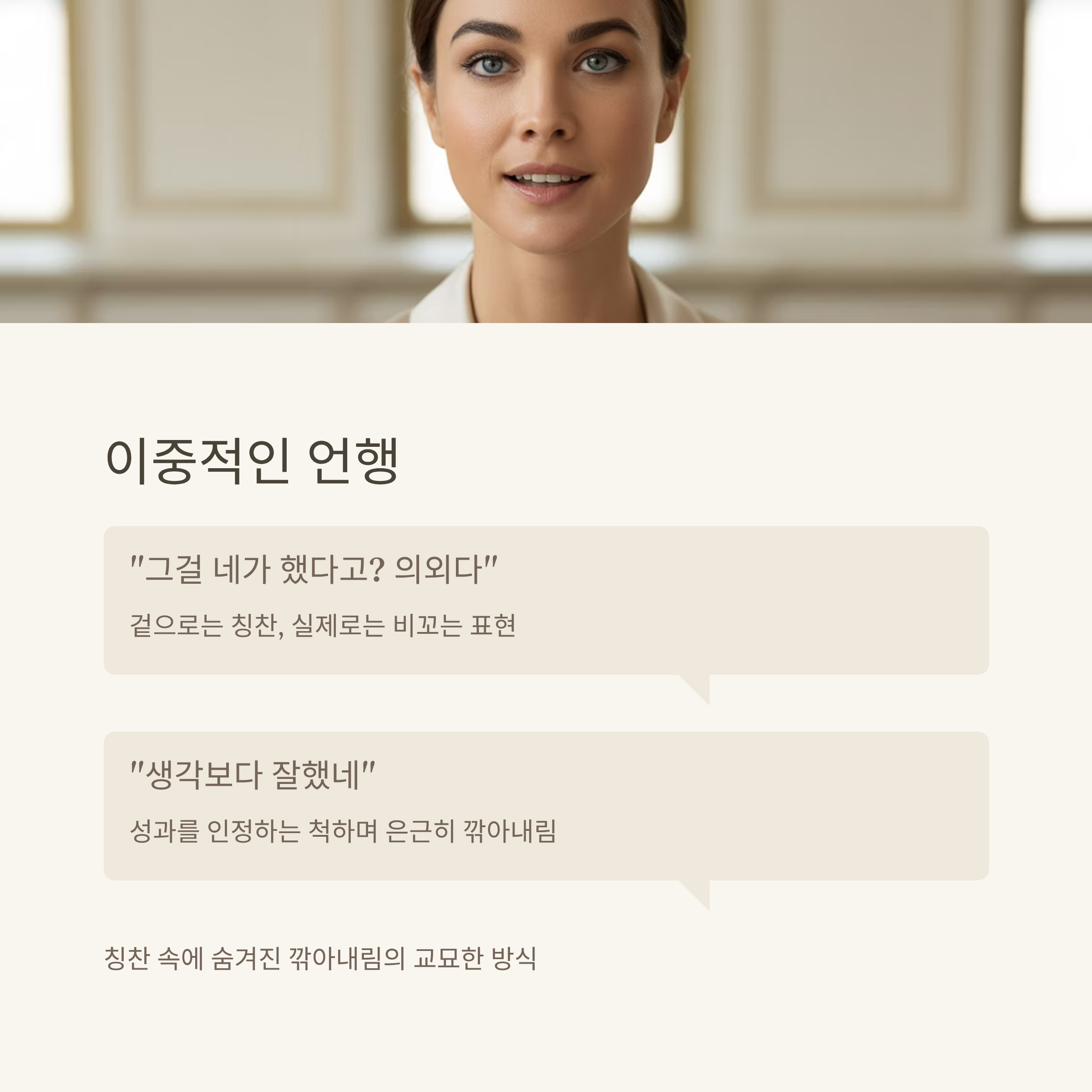 이중적인 언행, 칭찬 속에 숨겨진 깎아내림